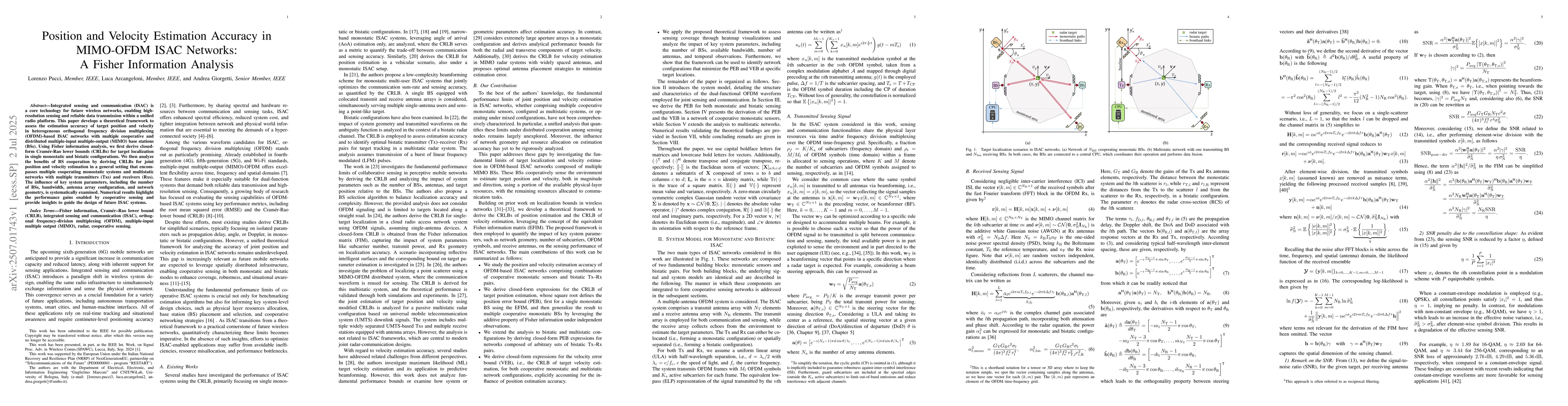 This paper presents a theoretical framework using Fisher information analysis to assess the accuracy of position and velocity estimation in MIMO-OFDM based ISAC networks. It derives closed-form Cramér-Rao lower bounds (CRLBs) for both monostatic and bistatic configurations, examining the benefits of BS cooperation and the impact of key parameters like bandwidth, antenna arrays, and network geometry on estimation accuracy.
