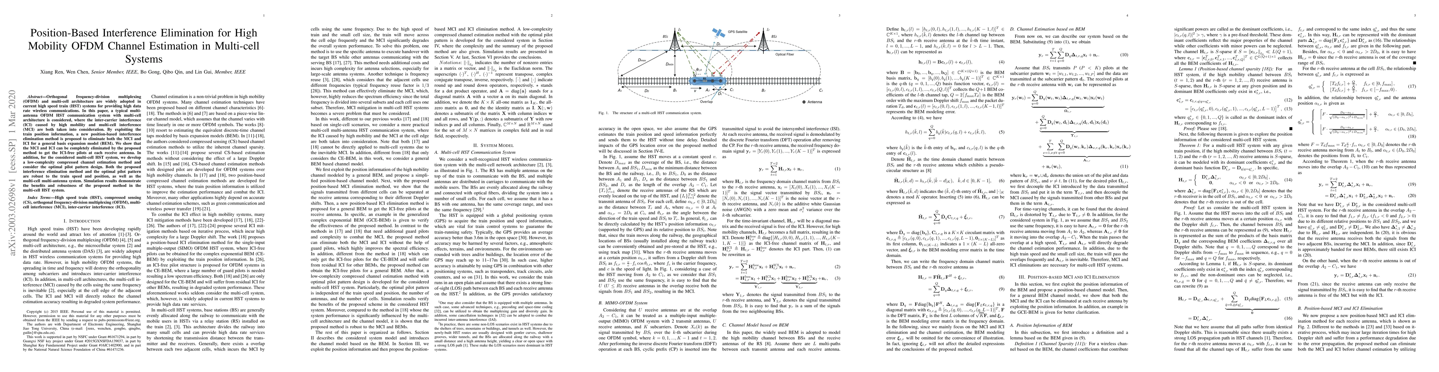 This paper proposes a position-based interference elimination method to tackle inter-carrier interference and multi-cell interference in high-speed train OFDM systems. The method leverages train position information to achieve complete interference elimination and develop a low-complexity compressed channel estimation, with optimal pilot pattern design robust to varying speeds and positions.