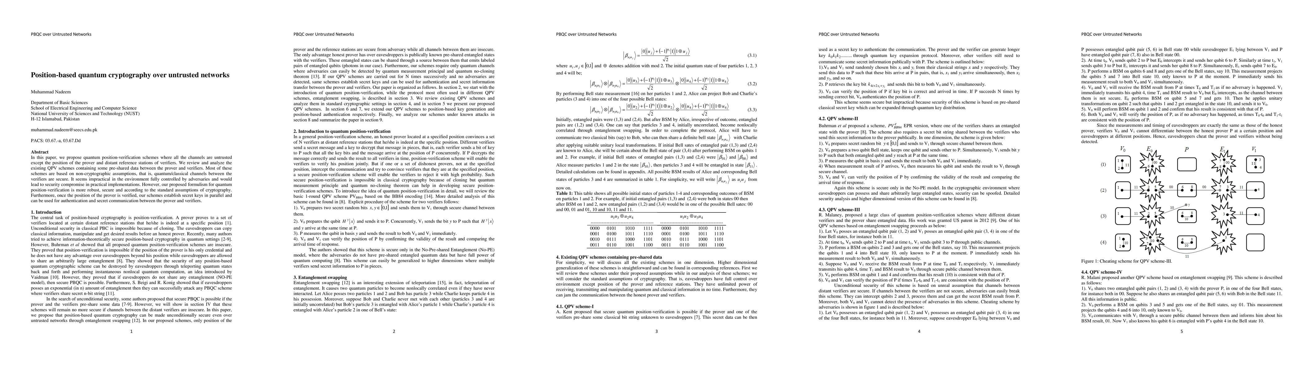 This paper proposes a new quantum position-verification scheme for untrusted networks, ensuring security without relying on the assumption of secure channels between verifiers. The scheme is robust and secure under standard cryptographic assumptions, enabling secret key establishment and communication.