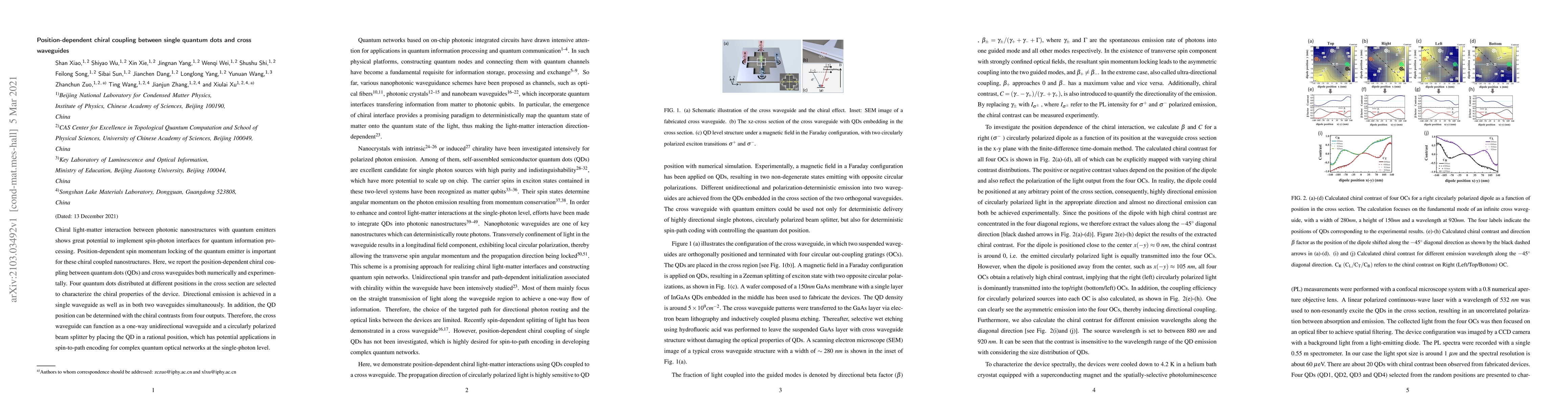 This paper investigates the position-dependent chiral coupling between quantum dots and cross waveguides, demonstrating both numerically and experimentally how varying the quantum dot's position affects the chiral properties and directional emission. The study shows potential for spin-photon interfaces in quantum information processing and applications in quantum optical networks.
