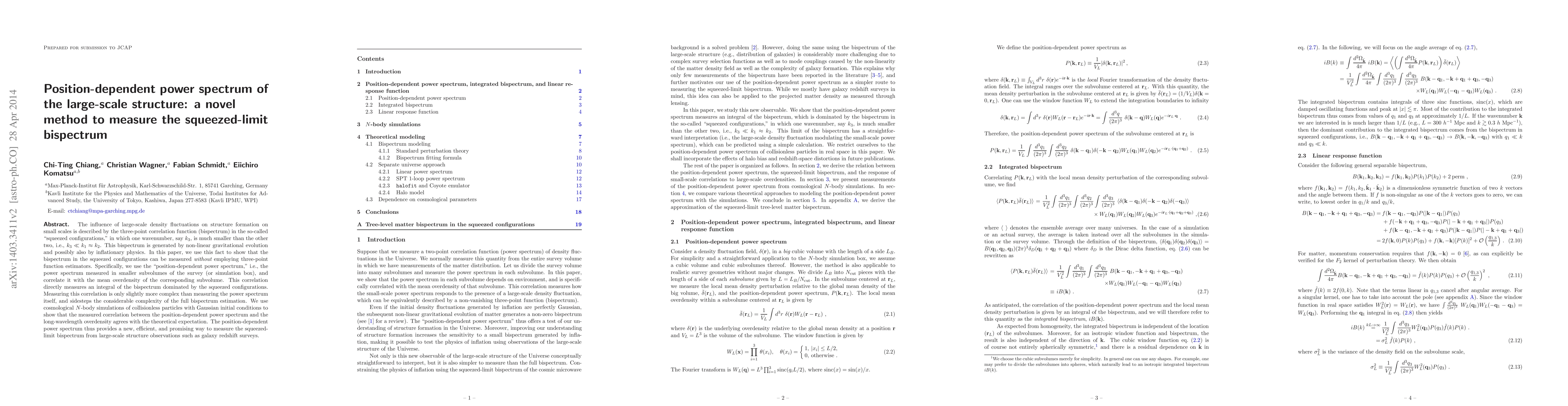 Researchers have developed a novel method to measure the squeezed-limit bispectrum of large-scale structure using the position-dependent power spectrum, which is simpler and more efficient than traditional methods.