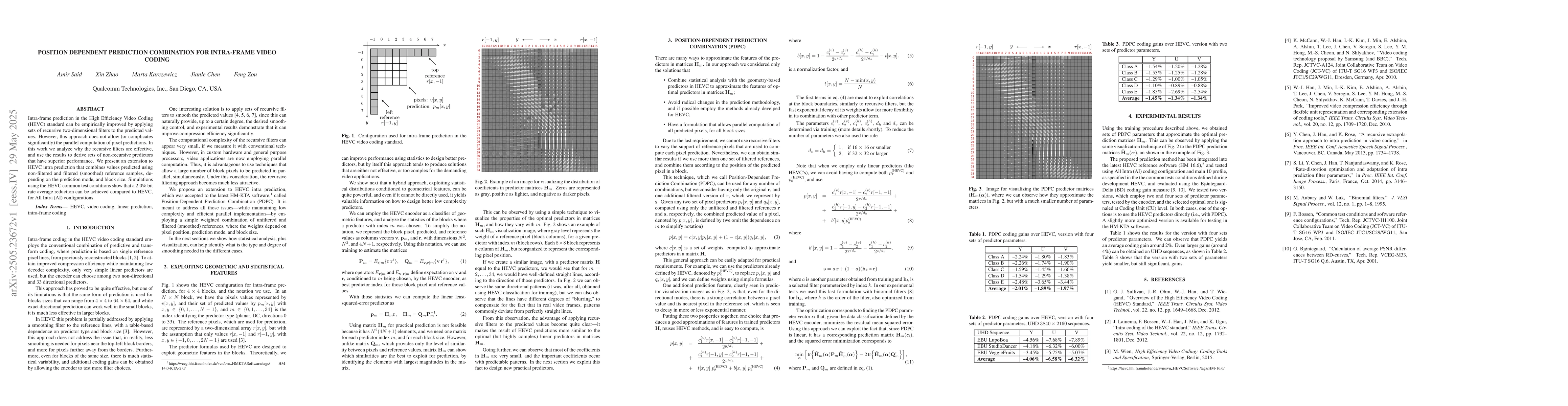 The research analyzes the effectiveness of recursive filters in HEVC intra-frame prediction, deriving non-recursive predictors with superior performance. It proposes a Position-Dependent Prediction Combination (PDPC) method that combines non-filtered and filtered reference samples based on prediction mode and block size.