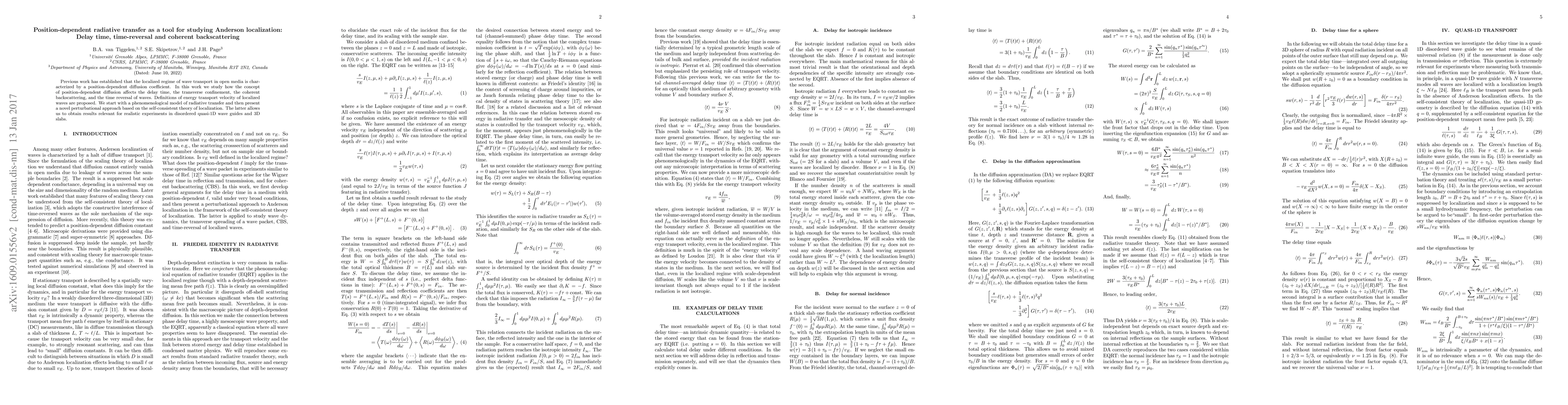 Previous work has established that the localized regime of wave transport in open media is characterized by a position-dependent diffusion coefficient. In this work we study how the concept of position-dependent diffusion affects the delay time, the transverse confinement, the coherent backscattering, and the time reversal of waves. Definitions of energy transport velocity of localized waves are proposed. We start with a phenomenological model of radiative transfer and then present a novel perturbational approach based on the self-consistent theory of localization. The latter allows us to obtain results relevant for realistic experiments in disordered quasi-1D wave guides and 3D slabs.