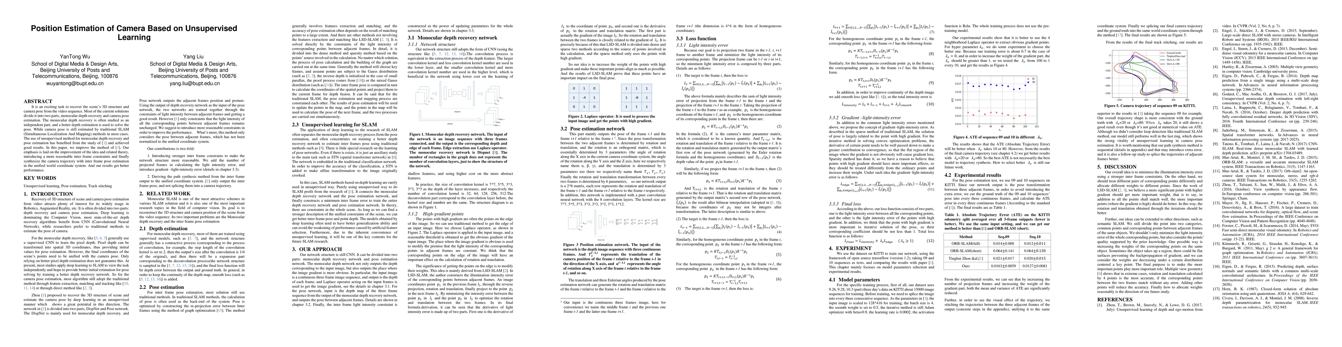 It is an exciting task to recover the scene's 3d-structure and camera pose from the video sequence. Most of the current solutions divide it into two parts, monocular depth recovery and camera pose estimation. The monocular depth recovery is often studied as an independent part, and a better depth estimation is used to solve the pose. While camera pose is still estimated by traditional SLAM (Simultaneous Localization And Mapping) methods in most cases. The use of unsupervised method for monocular depth recovery and pose estimation has benefited from the study of [1] and achieved good results. In this paper, we improve the method of [1]. Our emphasis is laid on the improvement of the idea and related theory, introducing a more reasonable inter frame constraints and finally synthesize the camera trajectory with inter frame pose estimation in the unified world coordinate system. And our results get better performance.