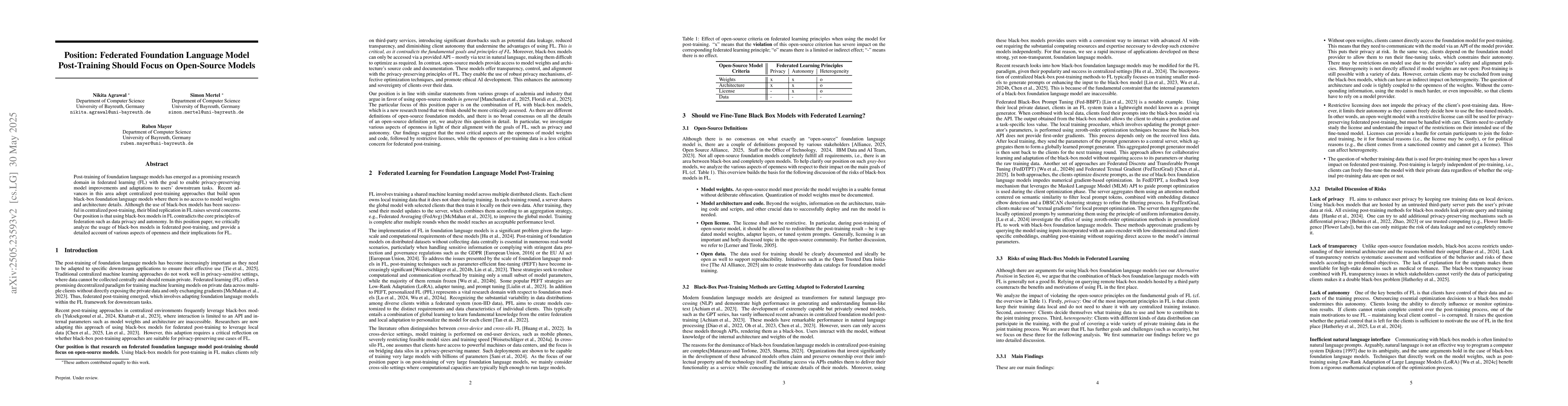 Post-training foundation language models in federated learning should focus on open-source models to maintain data privacy and autonomy, contrary to using black-box models.