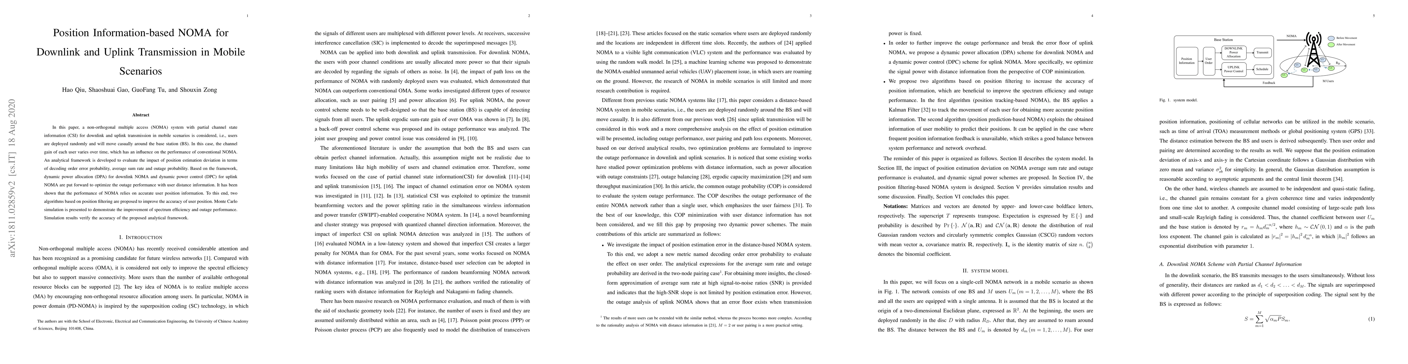 This paper proposes a NOMA system for mobile scenarios with partial channel state information, developing an analytical framework to assess the impact of position estimation errors on decoding order, sum rate, and outage probability. It introduces dynamic power allocation and control methods, along with position filtering algorithms to enhance user position accuracy, ultimately improving spectrum efficiency and outage performance.