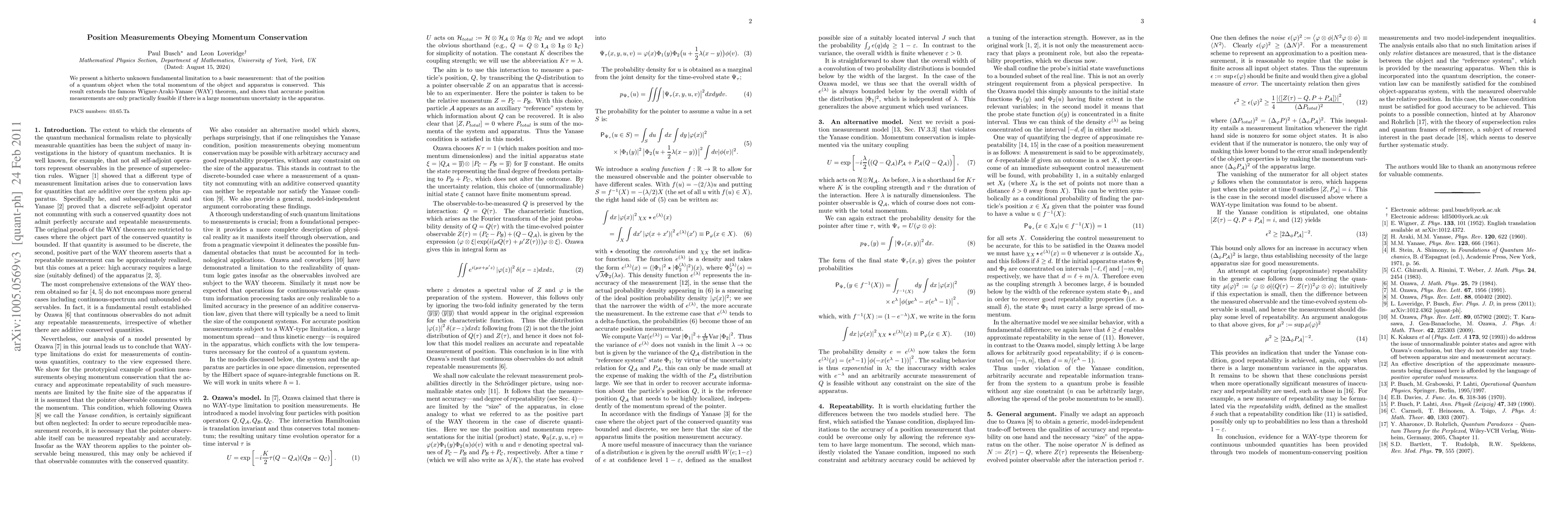 The research presents an analysis of position measurements in quantum mechanics under the constraint of momentum conservation, extending the Wigner-Araki-Yanase (WAY) theorem.