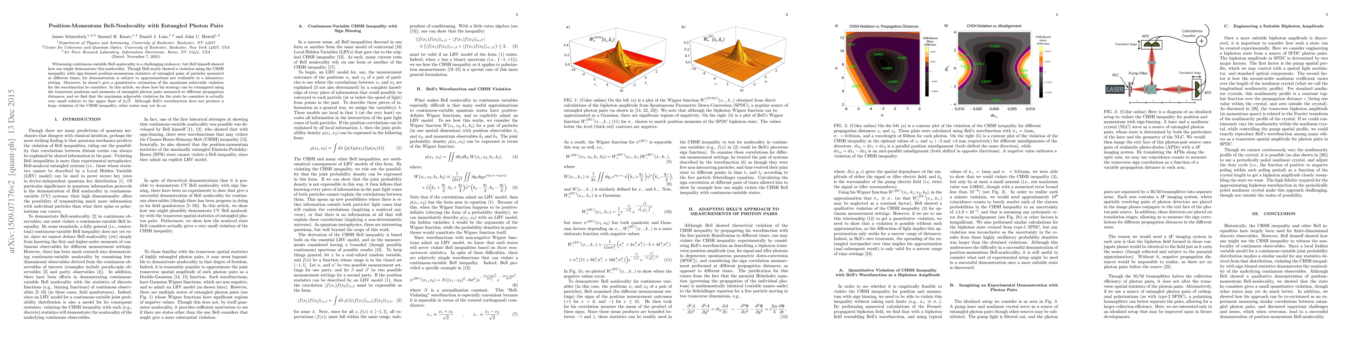Witnessing continuous-variable Bell nonlocality is a challenging endeavor, but Bell himself showed how one might demonstrate this nonlocality. Though Bell nearly showed a violation using the CHSH inequality with sign-binned position-momentum statistics of entangled pairs of particles measured at different times, his demonstration is subject to approximations not realizable in a laboratory setting. Moreover, he doesn't give a quantitative estimation of the maximum achievable violation for the wavefunction he considers. In this article, we show how his strategy can be reimagined using the transverse positions and momenta of entangled photon pairs measured at different propagation distances, and we find that the maximum achievable violation for the state he considers is actually very small relative to the upper limit of $2\sqrt{2}$. Although Bell's wavefunction does not produce a large violation of the CHSH inequality, other states may yet do so.