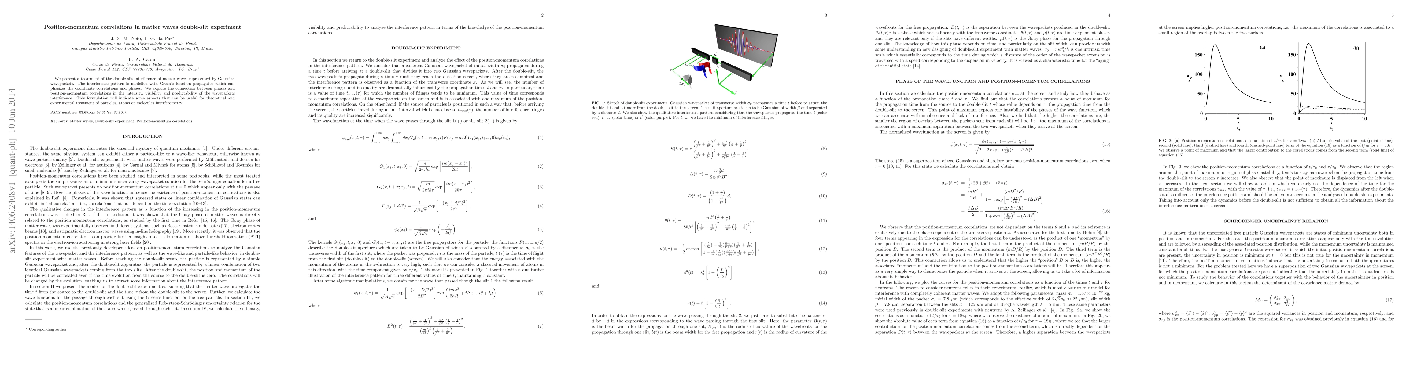 This paper investigates the double-slit interference of matter waves using Gaussian wavepackets, modeling the pattern with a Green's function propagator to highlight position-momentum correlations. It explores the impact of these correlations on the intensity, visibility, and predictability of the wavepackets' interference, offering insights for particle interferometry.