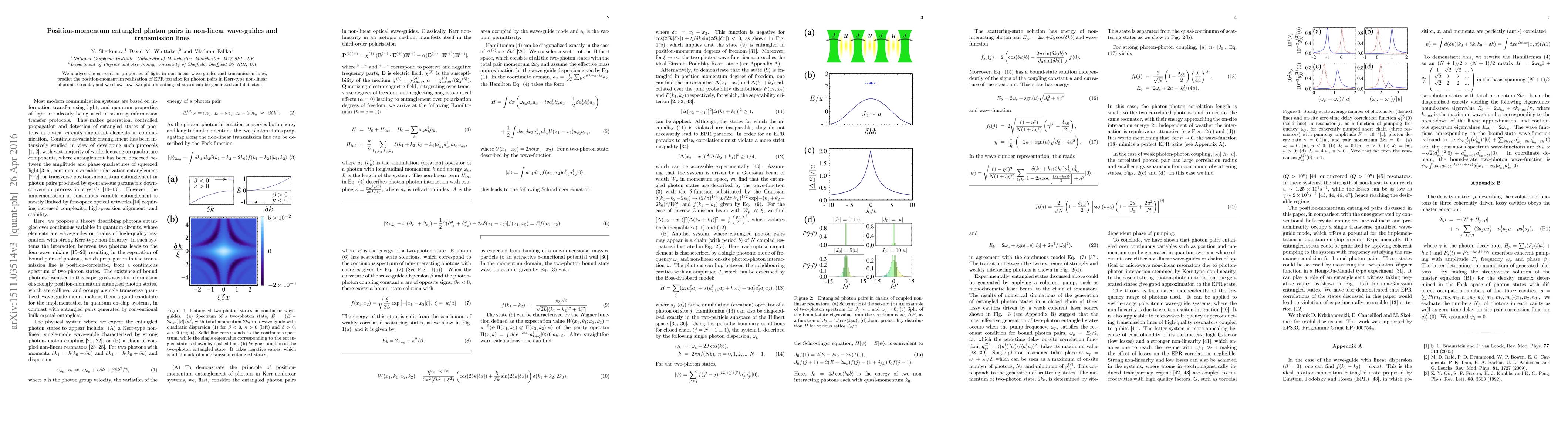 This paper investigates the generation and detection of position-momentum entangled photon pairs in non-linear wave-guides and transmission lines, predicting the realization of the EPR paradox in Kerr-type photonic circuits and detailing the mechanisms for creating and identifying two-photon entangled states.
