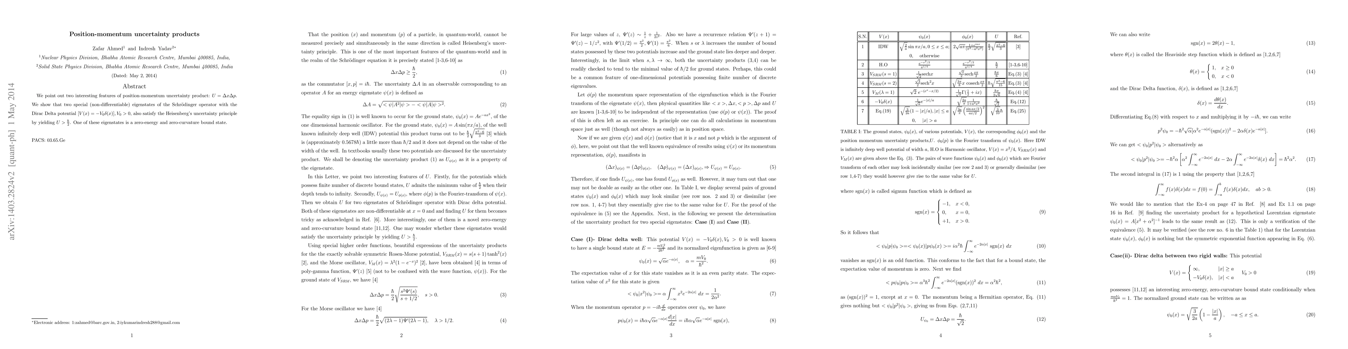 We point out two interesting features of position-momentum uncertainty product: $U=\Delta x \Delta p$. We show that two special (non-differentiable) eigenstates of the Schr{\"o}dinger operator with the Dirac Delta potential $[V(x)=-V_0 \delta(x)],V_0>0$, also satisfy the Heisenberg's uncertainty principle by yielding $U> \frac{\hbar}{2}$. One of these eigenstates is a zero-energy and zero-curvature bound state.