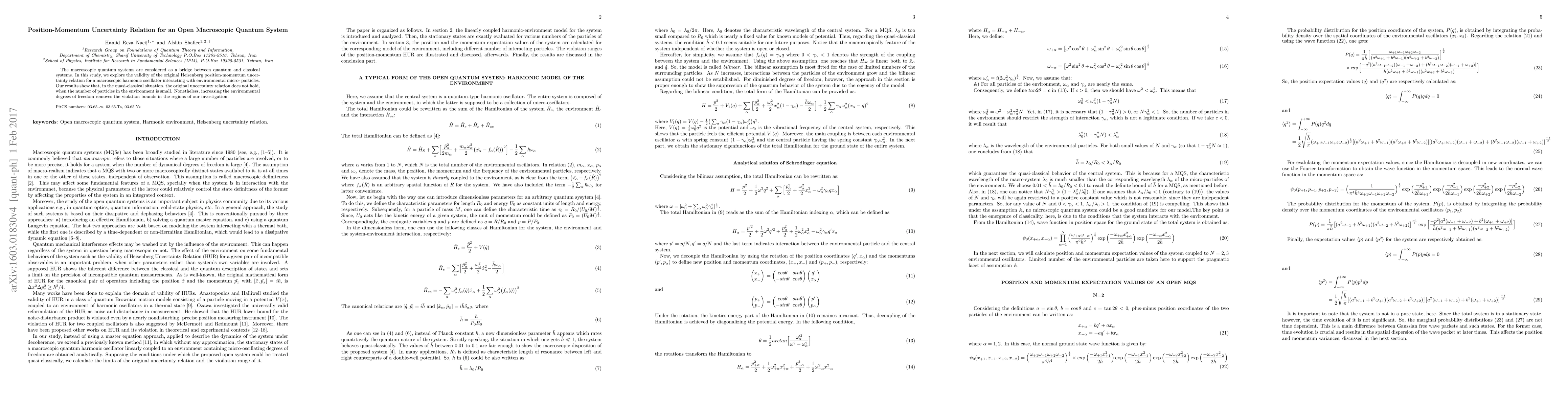 This paper investigates the applicability of Heisenberg's position-momentum uncertainty relation to a macroscopic quantum oscillator in interaction with a small number of environmental particles, finding that the relation is violated in quasi-classical conditions but is restored with increased environmental degrees of freedom.