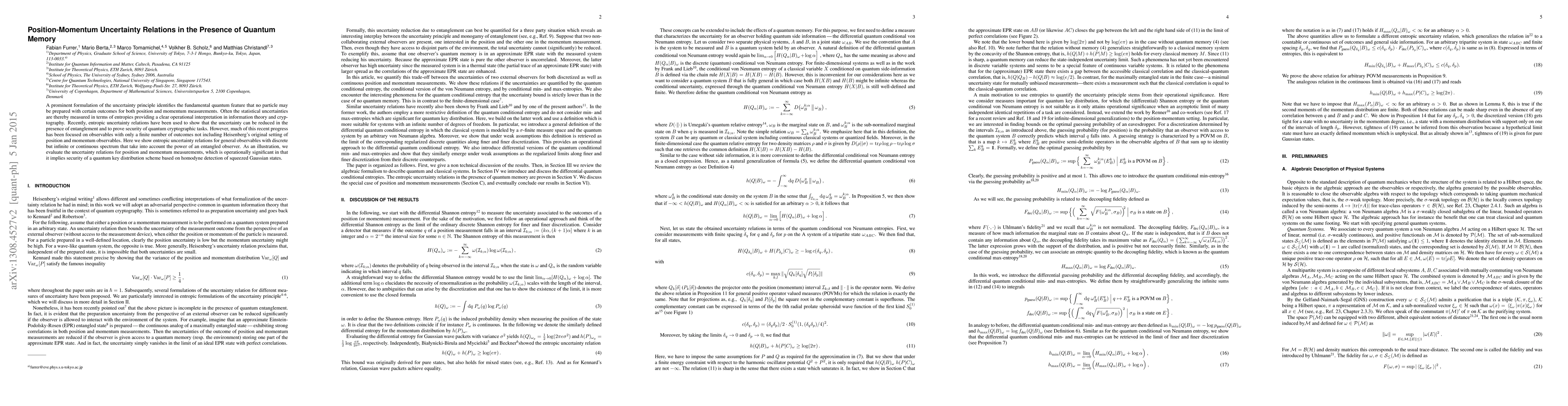 This paper extends entropic uncertainty relations to general observables, including position and momentum, in the context of quantum memory. It demonstrates how entangled observers can influence these relations, providing security implications for quantum key distribution schemes.