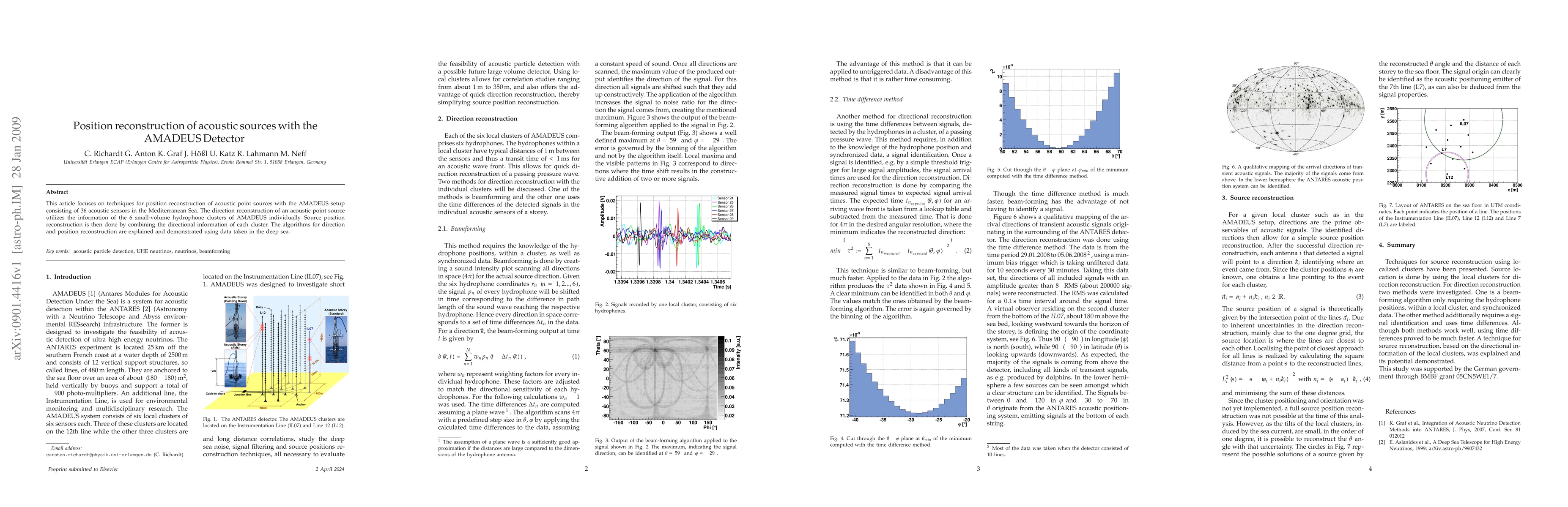 This paper details methods for reconstructing the position of acoustic point sources using the AMADEUS detector, which comprises 36 sensors in the Mediterranean Sea. It combines directional data from six small hydrophone clusters to achieve precise source localization.