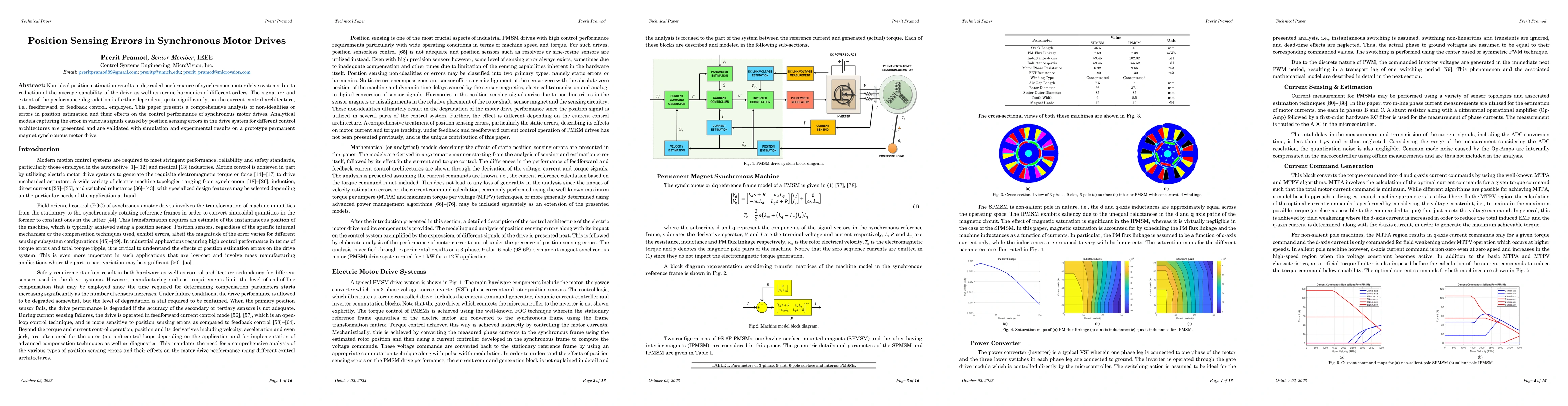 This paper analyzes position sensing errors in synchronous motor drives, showing their impact on performance and torque harmonics, which varies with the current control architecture. Analytical models and validation through simulations and experiments on a prototype drive are presented.