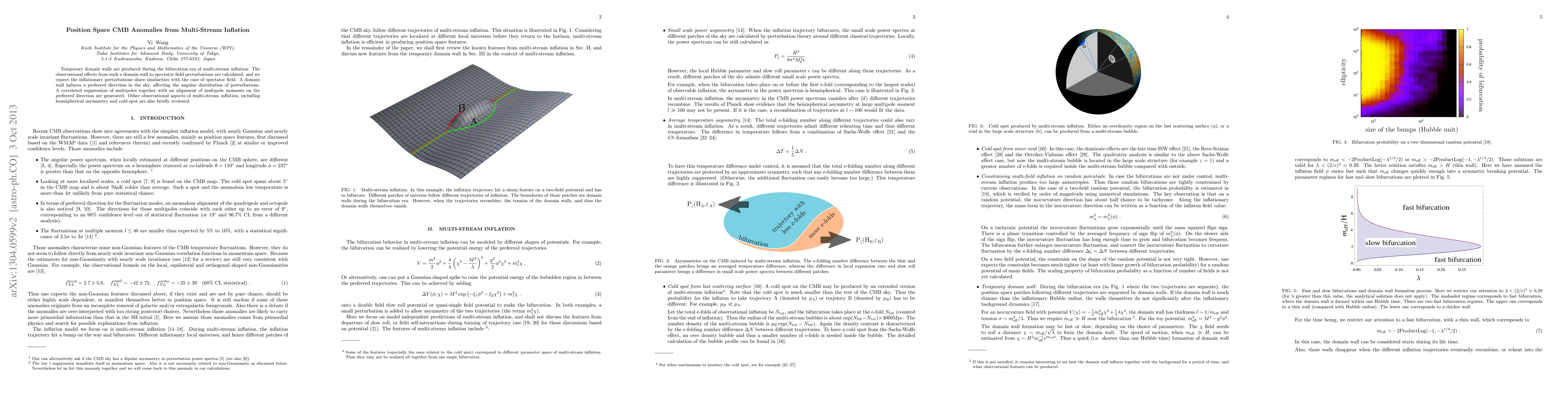 This paper investigates how temporary domain walls during multi-stream inflation create CMB anomalies, leading to a preferred direction in the sky and correlated suppression of multipoles, alongside a review of hemispherical asymmetry and cold spot phenomena.