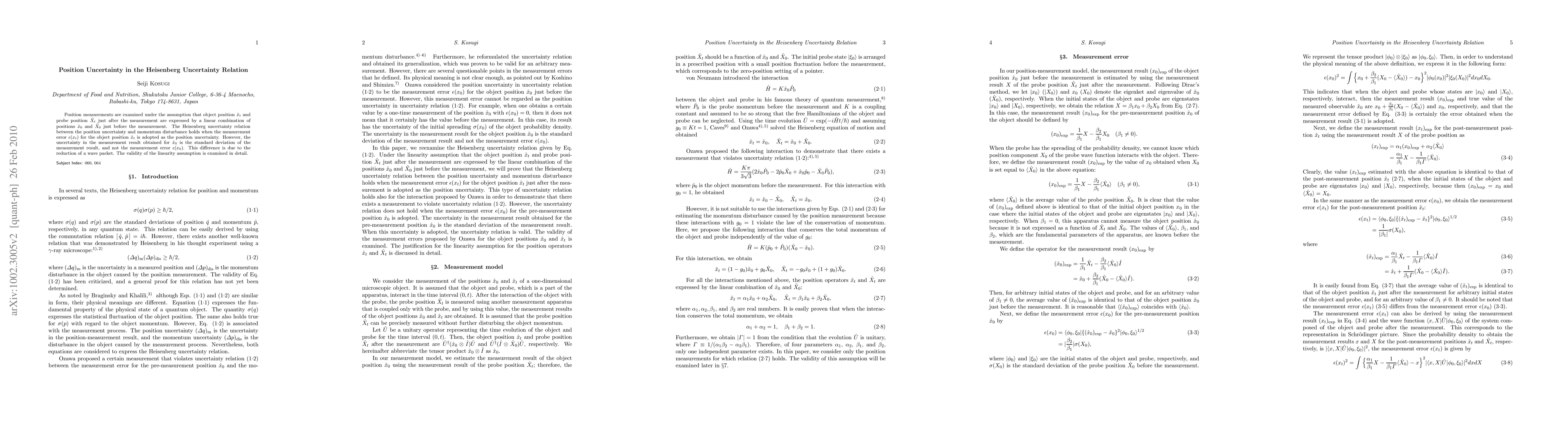 This paper investigates the position uncertainty in the Heisenberg Uncertainty Relation, demonstrating that the standard deviation of the measurement result for initial position differs from the measurement error, due to wave packet reduction. The study scrutinizes the validity of the linearity assumption underlying position measurements.