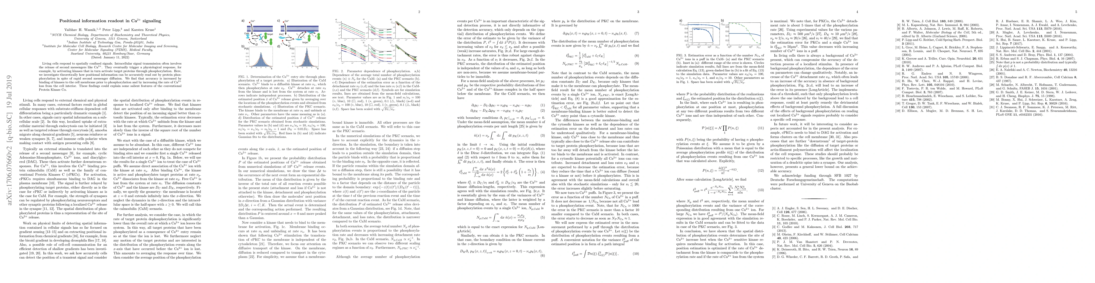 Living cells respond to spatial signals. Signal transmission to the cell interior often involves the release of second messengers like $Ca^{2+}$ . They will eventually trigger a physiological response by activating kinases that in turn activate target proteins through phosphorylation. Here, we investigate theoretically how positional information can be accurately read out by protein phosphorylation in spite of rapid second messenger diffusion. We find that accuracy is increased by binding of the kinases to the cell membrane prior to phosphorylation and by increasing the rate of $Ca^{2+}$ loss from the cell interior. These findings could explain some salient features of conventional protein kinases C.