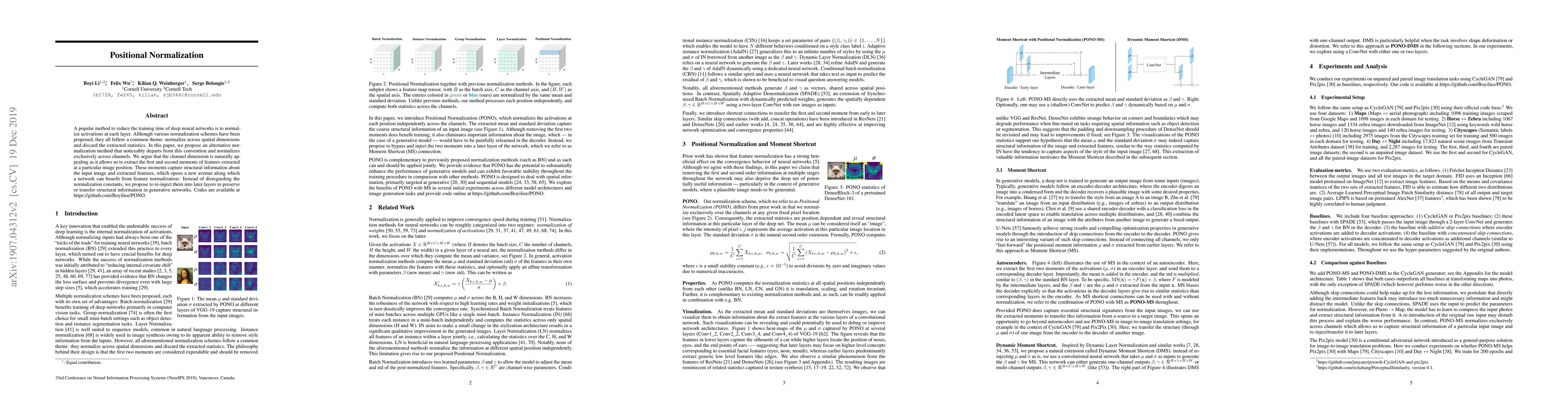 This paper introduces a novel positional normalization method that normalizes activations across channels rather than spatial dimensions, aiming to capture structural information in features. Instead of discarding normalization constants, it re-injects them to preserve or transfer structural information, potentially improving generative networks.