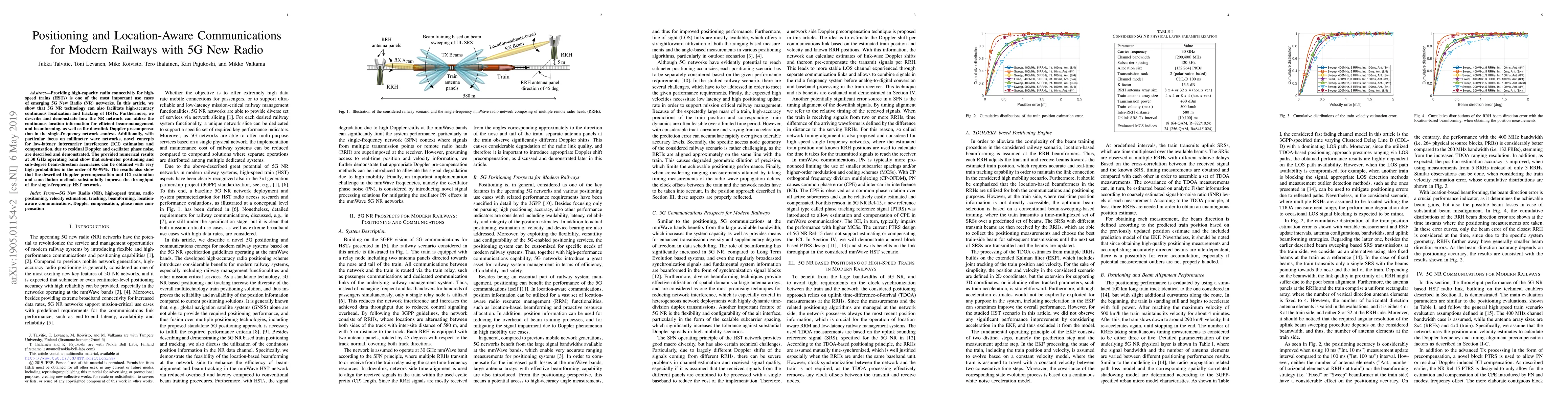 Providing high-capacity radio connectivity for high-speed trains (HSTs) is one of the most important use cases of emerging 5G New Radio (NR) networks. In this article, we show that 5G NR technology can also facilitate high-accuracy continuous localization and tracking of HSTs. Furthermore, we describe and demonstrate how the NR network can utilize the continuous location information for efficient beam-management and beamforming, as well as for downlink Doppler precompensation in the single-frequency network context. Additionally, with particular focus on millimeter wave networks, novel concepts for low-latency intercarrier interference (ICI) estimation and compensation, due to residual Doppler and oscillator phase noise, are described and demonstrated. The provided numerical results at 30 GHz operating band show that sub-meter positioning and sub-degree beam-direction accuracies can be obtained with very high probabilities in the order of 95-99%. The results also show that the described Doppler precompensation and ICI estimation and cancellation methods substantially improve the throughput of the single-frequency HST network.