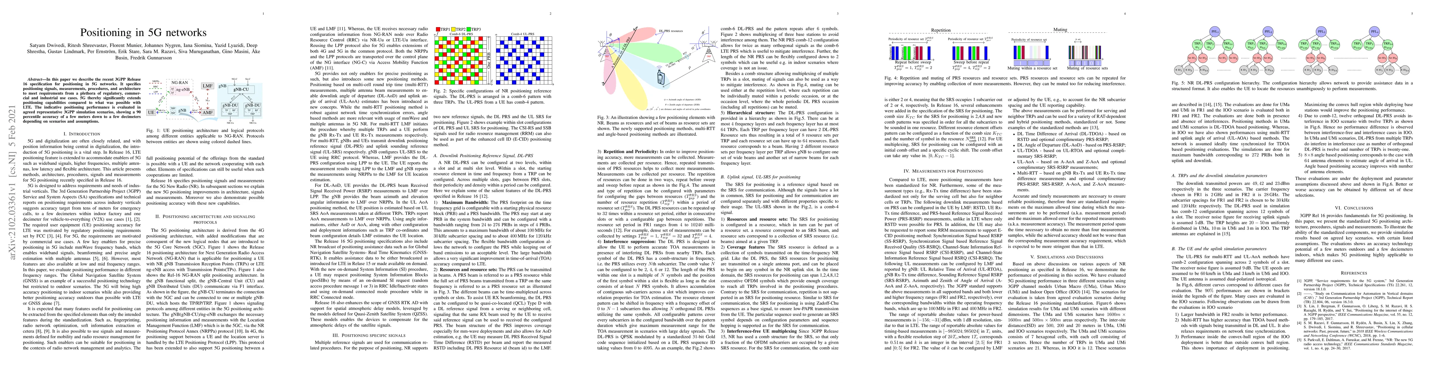 The paper describes the 3GPP Release 16 specification for positioning in 5G networks, detailing positioning signals, measurements, procedures, and architecture.