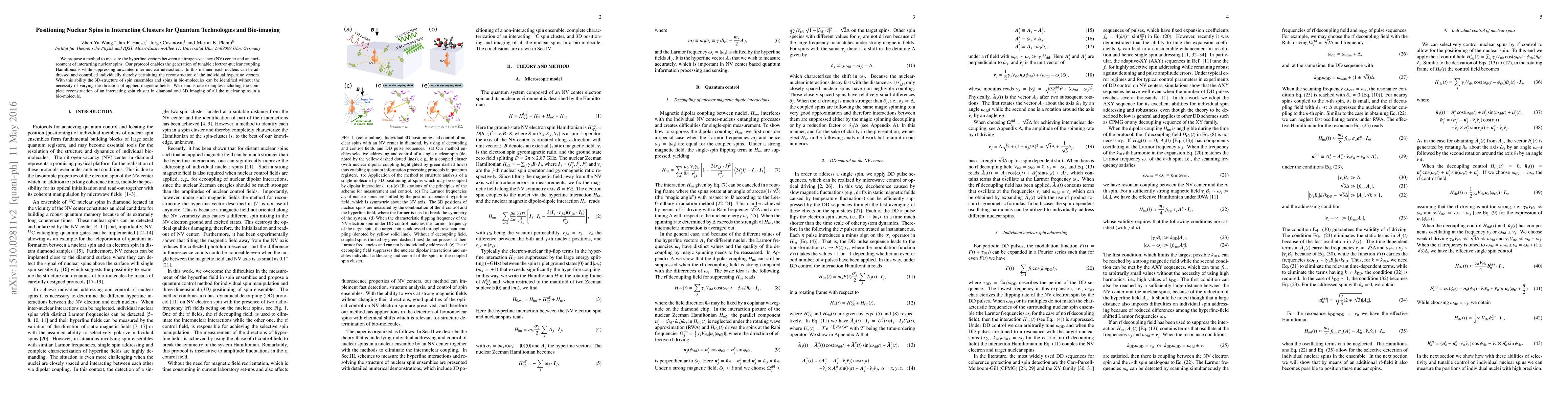 We propose a method to measure the hyperfine vectors between a nitrogen-vacancy (NV) center and an environment of interacting nuclear spins. Our protocol enables the generation of tunable electron-nuclear coupling Hamiltonians while suppressing unwanted inter-nuclear interactions. In this manner, each nucleus can be addressed and controlled individually thereby permitting the reconstruction of the individual hyperfine vectors. With this ability the 3D-structure of spin ensembles and spins in bio-molecules can be identified without the necessity of varying the direction of applied magnetic fields. We demonstrate examples including the complete reconstruction of an interacting spin cluster in diamond and 3D imaging of all the nuclear spins in a bio-molecule.