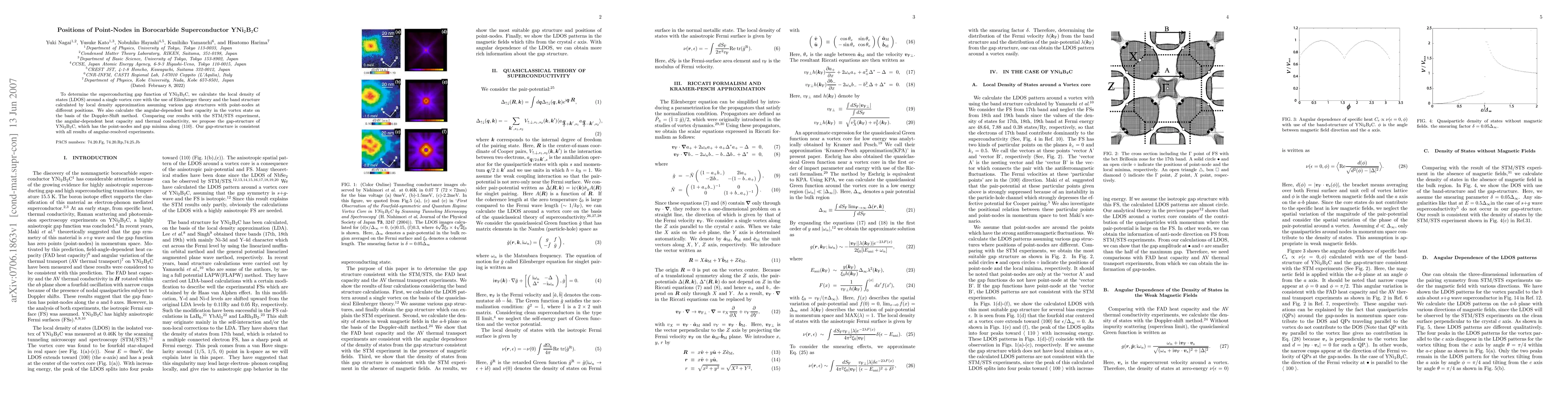 To determine the superconducting gap function of YNi2B2C, we calculate the local density of states (LDOS) around a single vortex core with the use of Eilenberger theory and the band structure calculated by local density approximation assuming various gap structures with point-nodes at different positions. We also calculate the angular-dependent heat capacity in the vortex state on the basis of the Doppler-Shift method. Comparing our results with the STM/STS experiment, the angular-dependent heat capacity and thermal conductivity, we propose the gap-structure of YNi2B2C, which has the point-nodes and gap minima along <110>. Our gap-structure is consistent with all results of angular-resolved experiments.