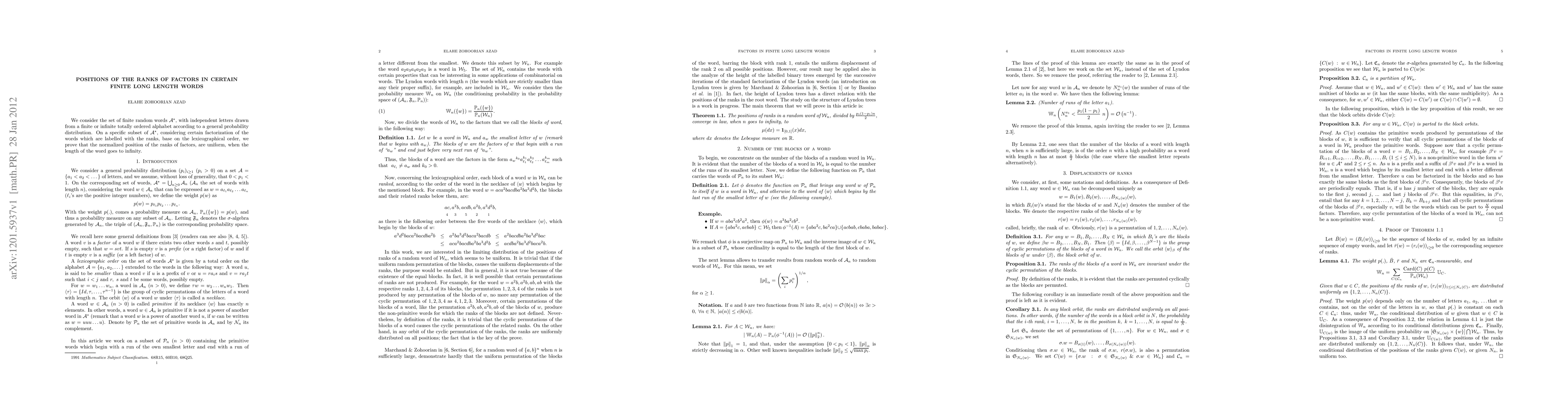 We consider the set of finite random words $\mathcal A^\star$, with independent letters drawn from a finite or infinite totally ordered alphabet according to a general probability distribution. On a specific subset of $\mathcal A^\star$, considering certain factorization of the words which are labelled with the ranks, base on the lexicographical order, we prove that the normalized position of the ranks of factors, are uniform, when the length of the word goes to infinity.