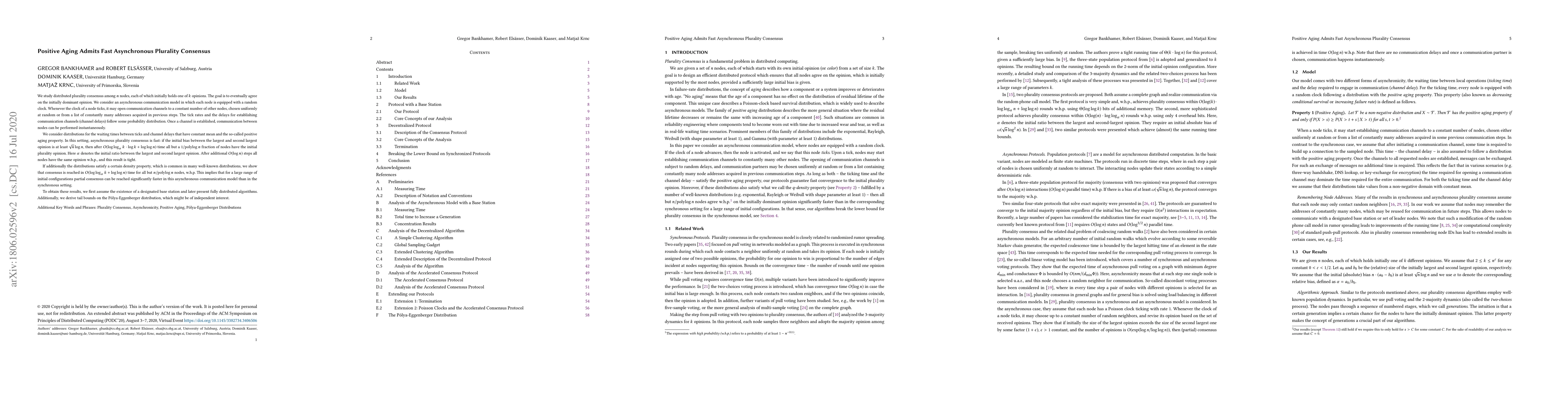This paper investigates distributed plurality consensus in an asynchronous communication model with random clock ticks and communication delays. It demonstrates that consensus on the dominant opinion can be achieved rapidly, especially when initial opinion biases are sufficiently large, and the communication delays exhibit positive aging properties.