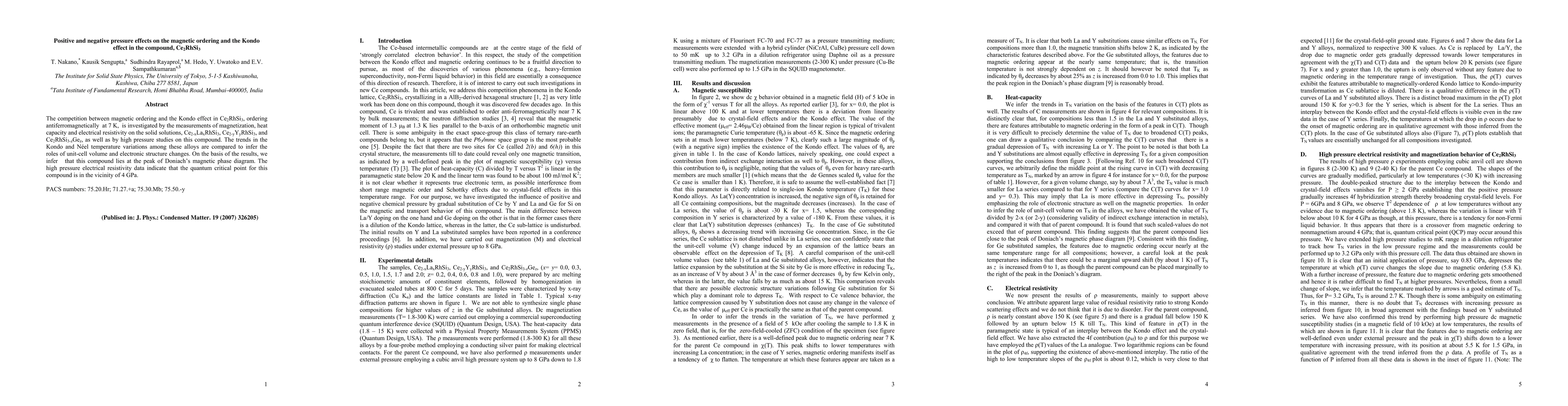The competition between magnetic ordering and the Kondo effect in Ce2RhSi3, ordering antiferromagnetically at 7 K, is investigated by the measurements of magnetization, heat capacity and electrical resistivity on the solid solutions, Ce(2-x)La(x)RhSi3, Ce(2-y)Y(y)RhSi3, and Ce2RhSi(3-z)Ge(z), as well as by high pressure studies on this compound. The trends in the Kondo and Neel temperature variations among these alloys are compared to infer the roles of unit-cell volume and electronic structure changes. On the basis of the results, we infer that this compound lies at the peak of Doniach-magnetic-phase-diagram. The high pressure electrical resistivity data indicate that the quantum critical point for this compound is in the vicinity of 4 GPa.