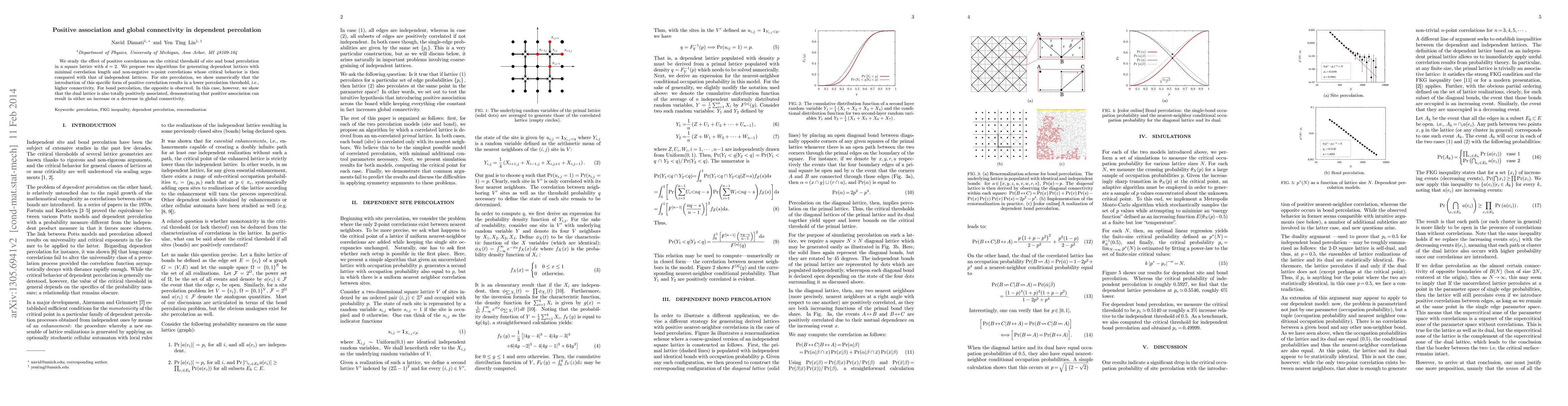 We study the effect of positive correlations on the critical threshold of site and bond percolation in a square lattice with d = 2. We propose two algorithms for generating dependent lattices with minimal correlation length and non-negative n-point correlations whose critical behavior is then compared with that of independent lattices. For site percolation, we show numerically that the introduction of this specific form of positive correlation results in a lower percolation threshold, i.e., higher connectivity. For bond percolation, the opposite is observed. In this case, however, we show that the dual lattice is also totally positively associated, demonstrating that positive association can result in either an increase or a decrease in global connectivity.