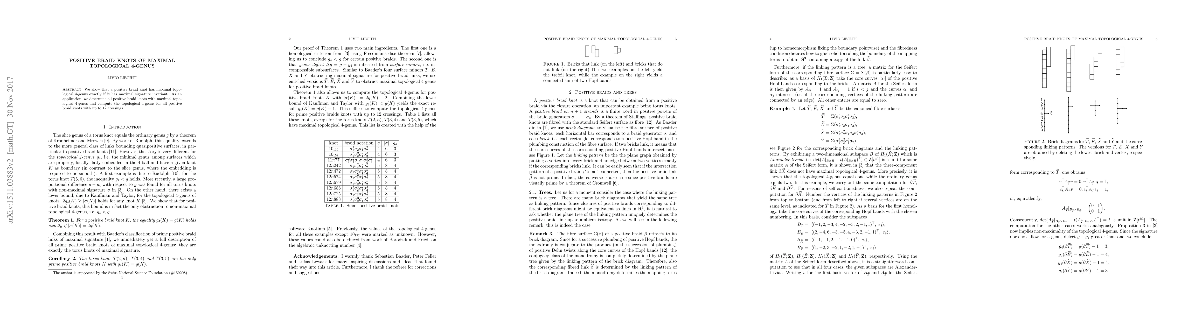 The paper demonstrates that positive braid knots achieve maximal topological 4-genus when they also have the maximal signature invariant. It further identifies and computes the topological 4-genus for all positive braid knots with up to 12 crossings.