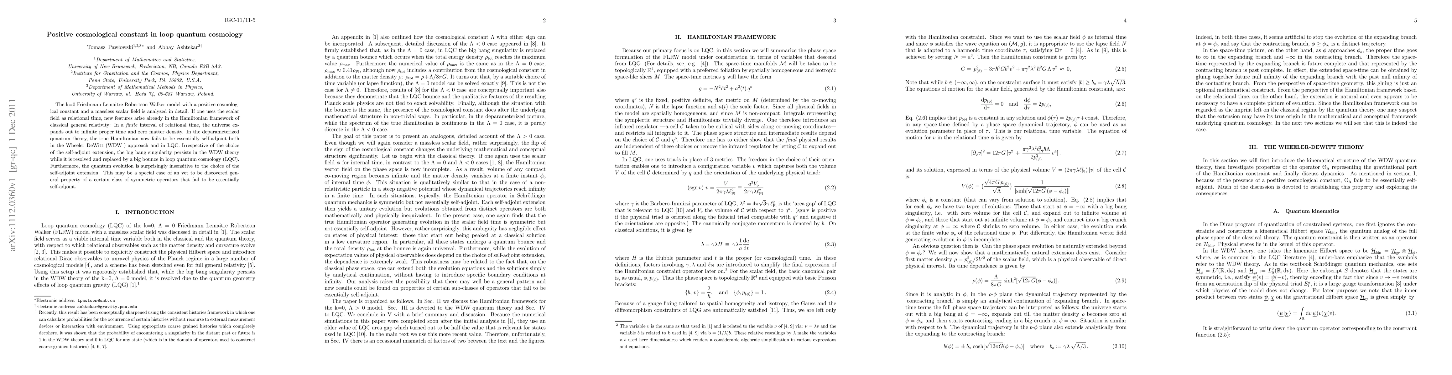 The k=0 Friedmann Lemaitre Robertson Walker model with a positive cosmological constant and a massless scalar field is analyzed in detail. If one uses the scalar field as relational time, new features arise already in the Hamiltonian framework of classical general relativity: In a finite interval of relational time, the universe expands out to infinite proper time and zero matter density. In the deparameterized quantum theory, the true Hamiltonian now fails to be essentially self-adjoint both in the Wheeler DeWitt (WDW) approach and in LQC. Irrespective of the choice of the self-adjoint extension, the big bang singularity persists in the WDW theory while it is resolved and replaced by a big bounce in loop quantum cosmology (LQC). Furthermore, the quantum evolution is surprisingly insensitive to the choice of the self-adjoint extension. This may be a special case of an yet to be discovered general property of a certain class of symmetric operators that fail to be essentially self-adjoint.