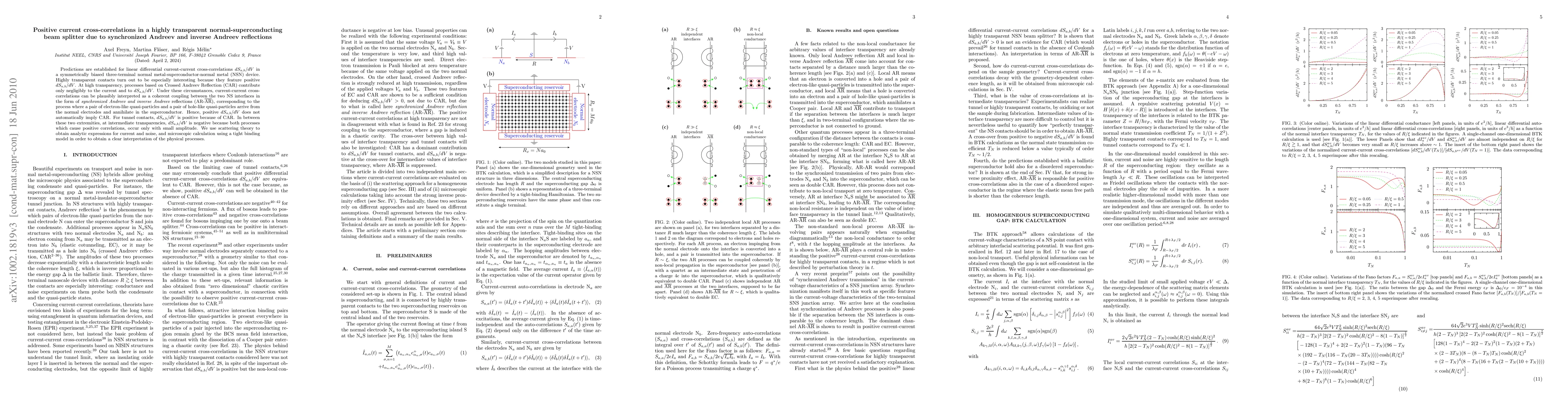 This paper predicts positive linear differential current-current cross-correlations in highly transparent normal-superconducting beam splitters due to synchronized Andreev and inverse Andreev reflections, rather than Crossed Andreev Reflection. It uses scattering theory and a tight binding model to explain the underlying physical processes.