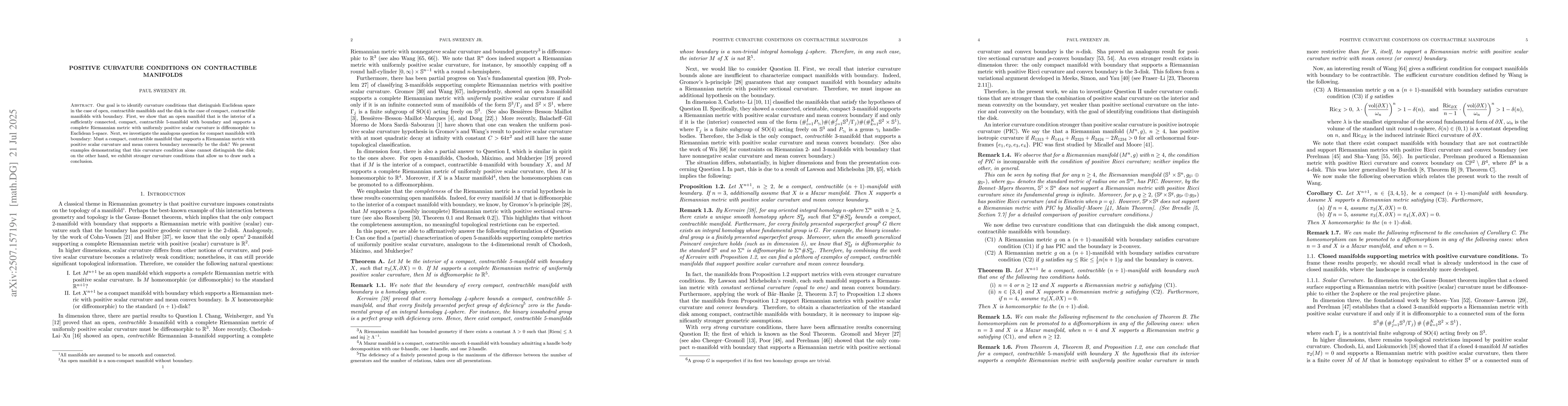 The paper employs a combination of geometric and topological techniques, including the study of Riemannian metrics, curvature conditions, and homotopy theory, to analyze contractible manifolds.