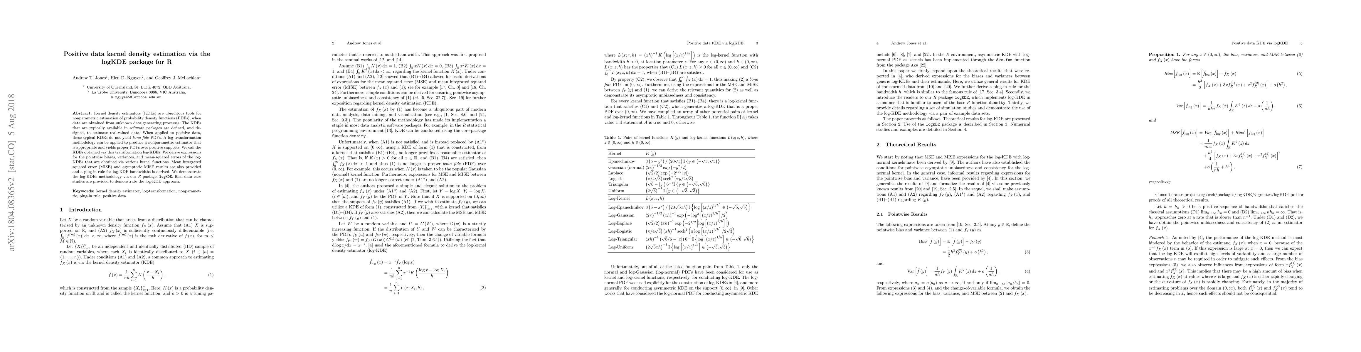 This paper introduces log-KDEs, a method for kernel density estimation suitable for positive data, using a log-transformation to ensure proper probability density functions. The authors provide theoretical analysis and an R package, logKDE, to implement this approach, demonstrating its effectiveness through real data case studies.