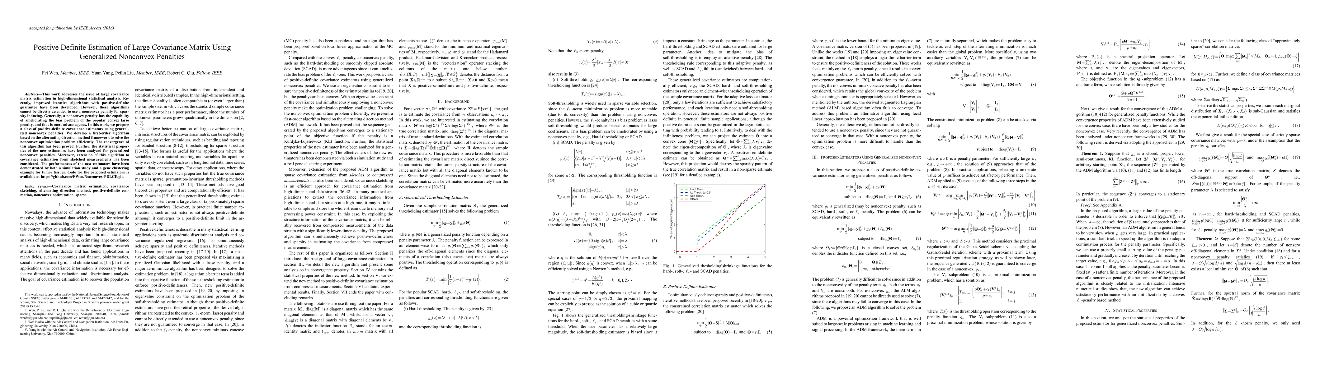 This paper proposes a class of positive-definite covariance estimators using generalized nonconvex penalties to improve high-dimensional statistical analysis. It introduces a first-order algorithm for efficient optimization and demonstrates its performance through simulations and a gene clustering example.
