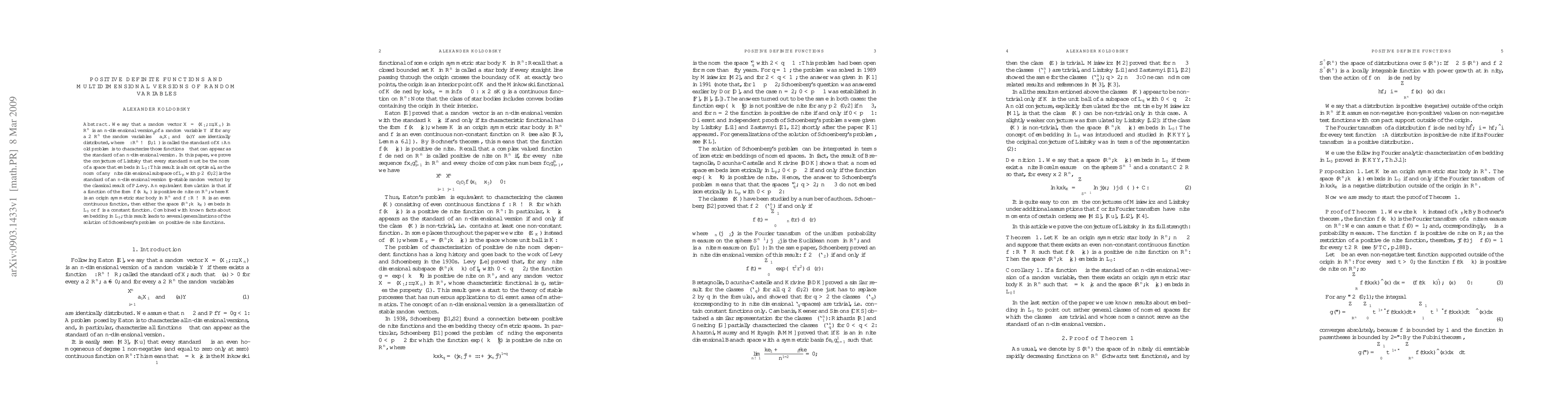We say that a random vector $X=(X_1,...,X_n)$ in $R^n$ is an $n$-dimensional version of a random variable $Y$ if for any $a\in R^n$ the random variables $\sum a_iX_i$ and $\gamma(a) Y$ are identically distributed, where $\gamma:R^n\to [0,\infty)$ is called the standard of $X.$ An old problem is to characterize those functions $\gamma$ that can appear as the standard of an $n$-dimensional version. In this paper, we prove the conjecture of Lisitsky that every standard must be the norm of a space that embeds in $L_0.$ This result is almost optimal, as the norm of any finite dimensional subspace of $L_p$ with $p\in (0,2]$ is the standard of an $n$-dimensional version ($p$-stable random vector) by the classical result of P.L\`evy. An equivalent formulation is that if a function of the form $f(\|\cdot\|_K)$ is positive definite on $R^n,$ where $K$ is an origin symmetric star body in $R^n$ and $f:R\to R$ is an even continuous function, then either the space $(R^n,\|\cdot\|_K)$ embeds in $L_0$ or $f$ is a constant function. Combined with known facts about embedding in $L_0,$ this result leads to several generalizations of the solution of Schoenberg's problem on positive definite functions.