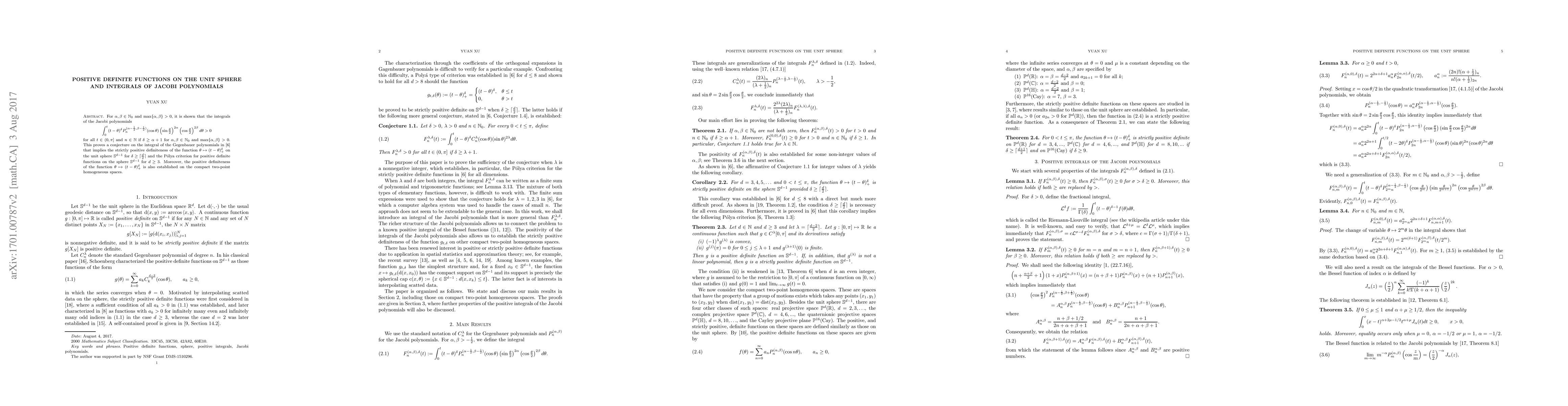 The research paper proves a conjecture on integral positivity of Jacobi polynomials, leading to positive definiteness of functions on the unit sphere and compact two-point homogeneous spaces for certain parameters.