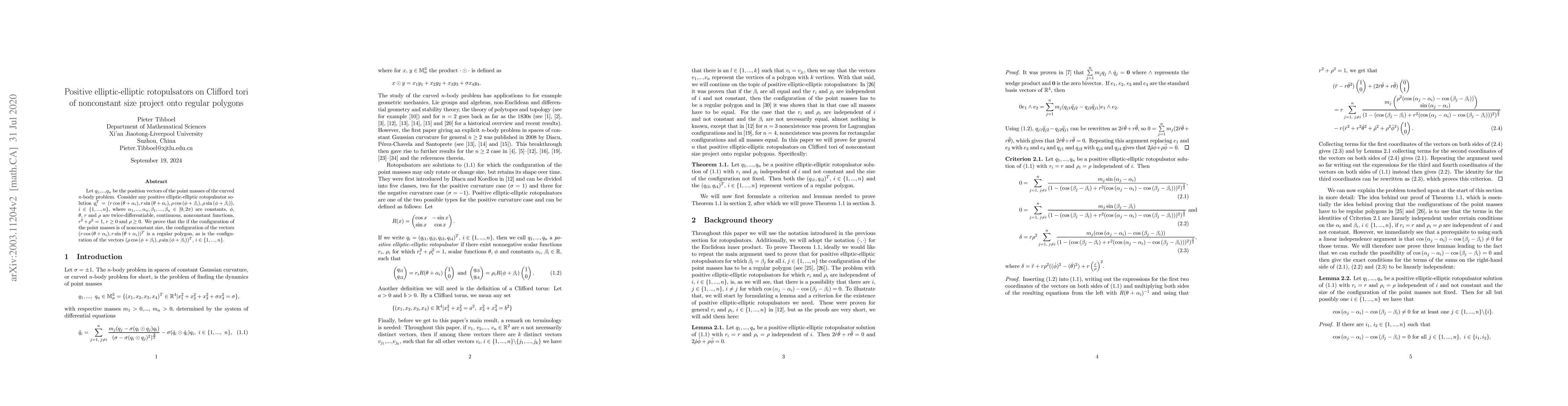 Let $q_{1}$,...,$q_{n}$ be the position vectors of the point masses of the curved $n$-body problem. Consider any positive elliptic-elliptic rotopulsator solution $q_{i}^{T}=(r\cos{(\theta+\alpha_{i})},r\sin{(\theta+\alpha_{i})},\rho\cos{(\phi+\beta_{i})},\rho\sin{(\phi+\beta_{i})})$, $i\in\{1,...,n\}$, where $\alpha_{1},...,\alpha_{n},\beta_{1},...,\beta_{n}\in [0,2\pi)$ are constants, $\phi$, $\theta$, $r$ and $\rho$ are twice-differentiable, continuous, nonconstant functions, $r^{2}+\rho^{2}=1$, $r\geq 0$ and $\rho\geq 0$. We prove that the if the configuration of the point masses is of nonconstant size, the configuration of the vectors $(r\cos{(\theta+\alpha_{i})},r\sin{(\theta+\alpha_{i})})^{T}$ is a regular polygon, as is the configuration of the vectors $(\rho\cos{(\phi+\beta_{i})},\rho\sin{(\phi+\beta_{i})})^{T}$, $i\in\{1,...,n\}$.
