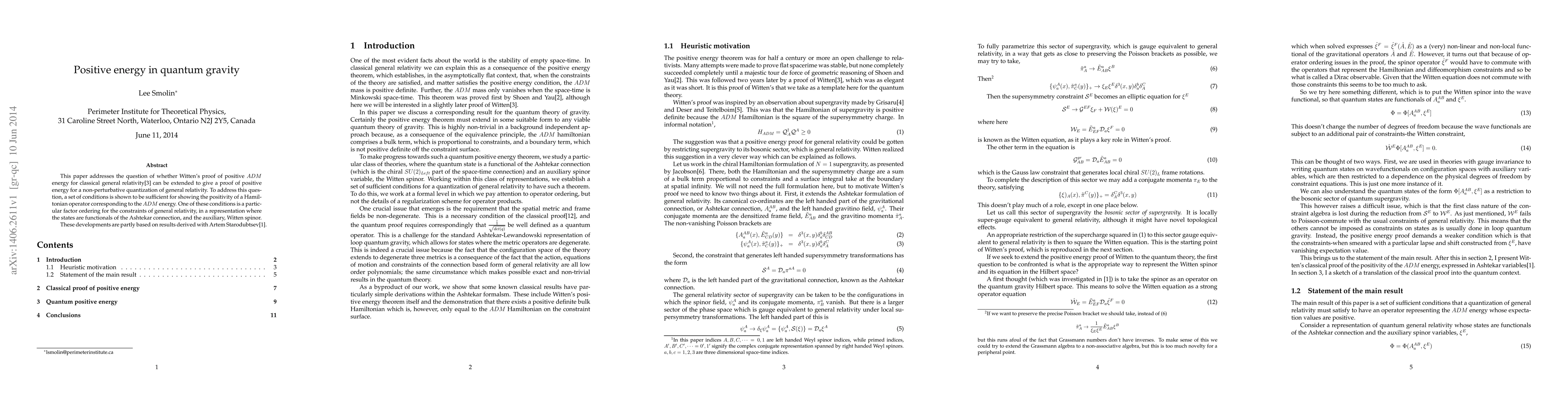 Researchers explore if a quantum gravity theory can prove positive energy for general relativity, showing one condition ensures positivity of the Hamiltonian operator. They develop a specific factor ordering for constraints in a representation using the Ashtekar connection.