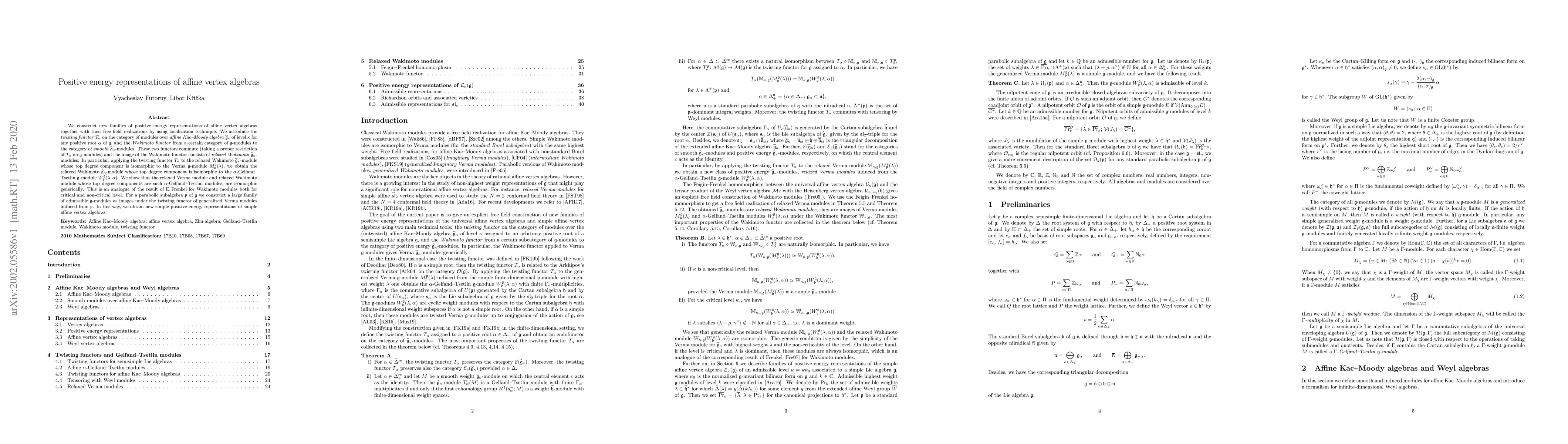 This paper constructs new families of positive energy representations of affine vertex algebras using localization techniques and introduces twisting and Wakimoto functors. It demonstrates the commutativity of these functors and establishes an isomorphism between certain relaxed Wakimoto modules and \alpha-Gelfand-Tsetlin modules, extending results from E. Frenkel.