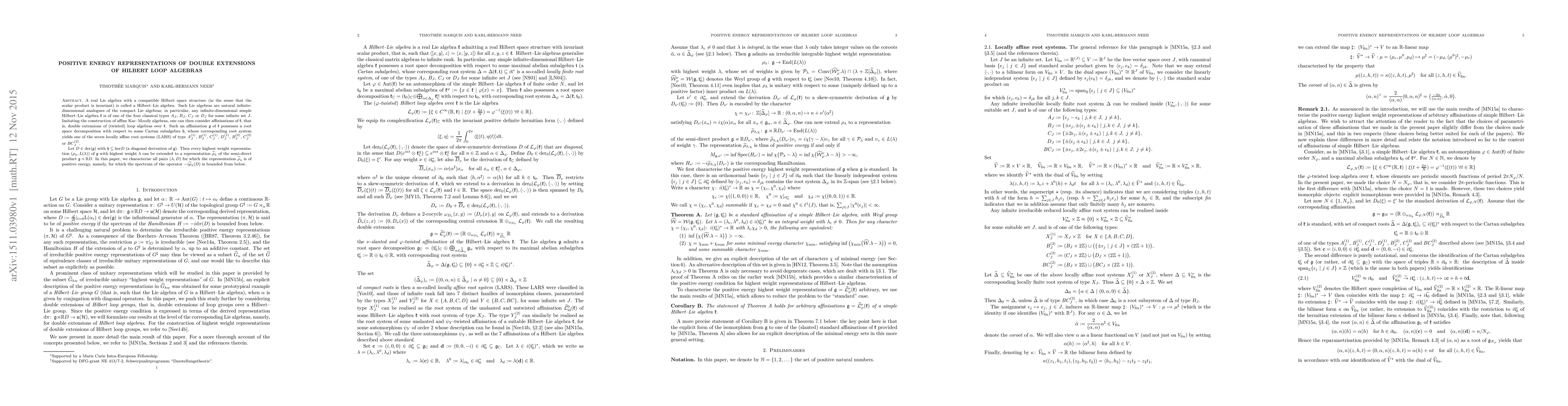 This paper investigates the positive energy representations of double extensions of Hilbert loop algebras, specifically focusing on the affinisations of infinite-dimensional simple Hilbert-Lie algebras. It characterizes pairs of highest weights and diagonal derivations for which the extended highest weight representations of these affinisations possess positive energy, meaning the spectrum of the associated operator is bounded from below.