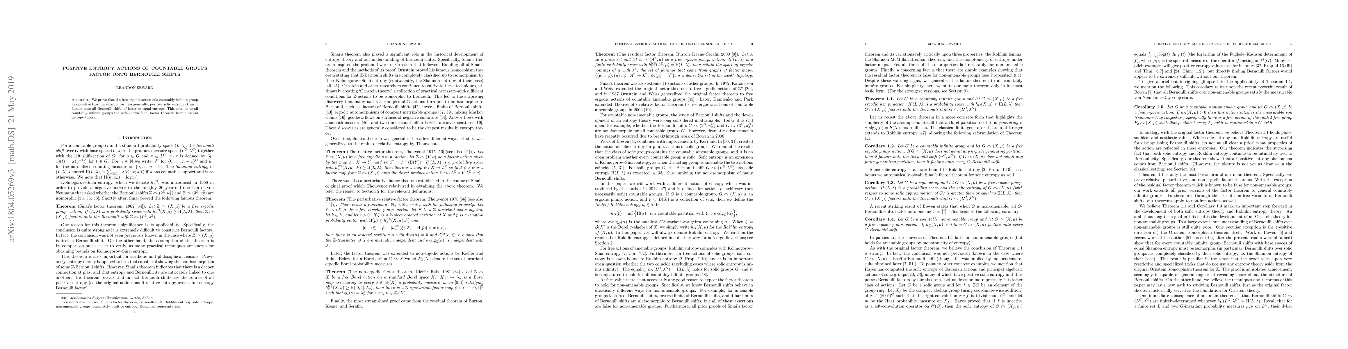 This paper proves that any free ergodic action of a countably infinite group with positive entropy factors onto Bernoulli shifts of equal or lesser entropy, extending the Sinai factor theorem to such groups. This result applies to both Rokhlin and sofic entropy.