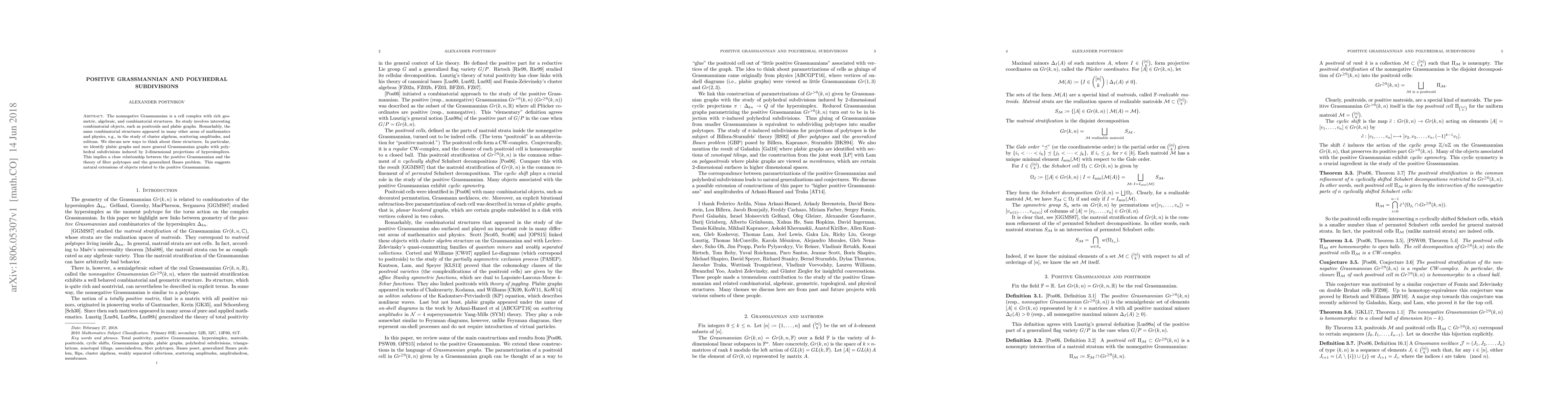 The paper explores the nonnegative Grassmannian's combinatorial structures, linking positroids and plabic graphs to polyhedral subdivisions from hypersimplex projections. This connection reveals a relationship with fiber polytopes and the generalized Baues problem, suggesting new extensions for related objects.