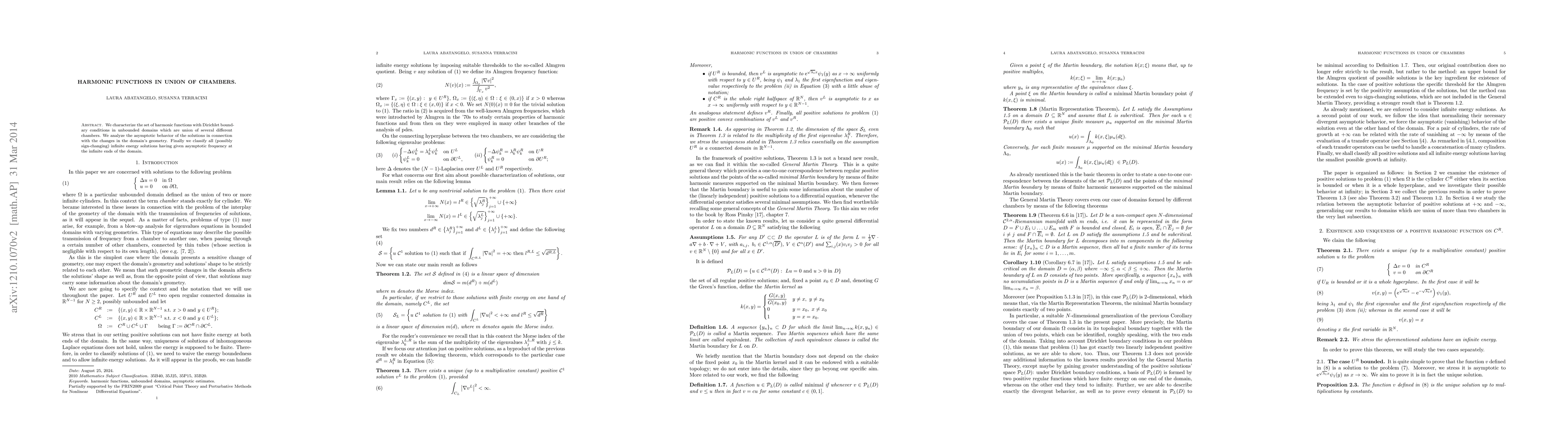 Researchers characterized positive harmonic functions with specific boundary conditions in unbounded domains composed of multiple chambers, analyzing their asymptotic behavior and classifying infinite energy solutions with minimal frequency at the domain's ends.