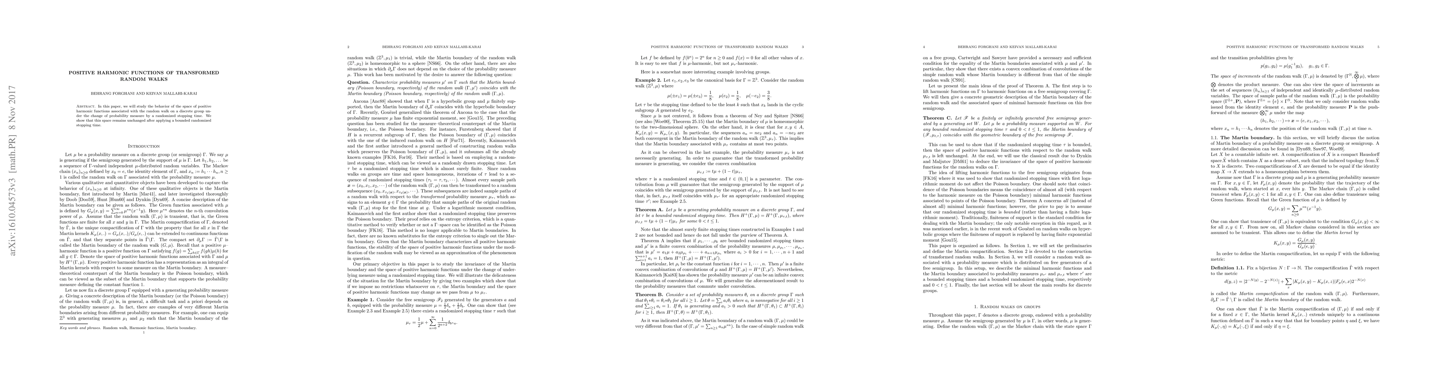 In this paper, we will study the behavior of the space of positive harmonic functions associated with the random walk on a discrete group under the change of probability measure by a randomized stopping time. We show that this space remains unchanged after applying a bounded randomized stopping time.