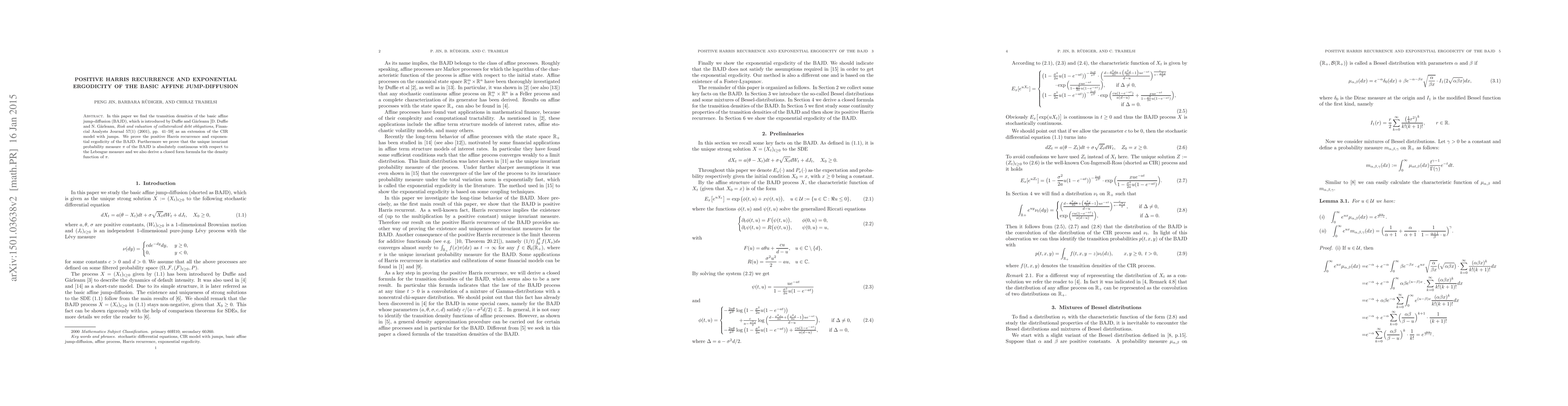 This paper investigates the basic affine jump-diffusion (BAJD) model, proving its positive Harris recurrence and exponential ergodicity. It also demonstrates that the unique invariant probability measure is absolutely continuous and provides a closed-form formula for its density function.