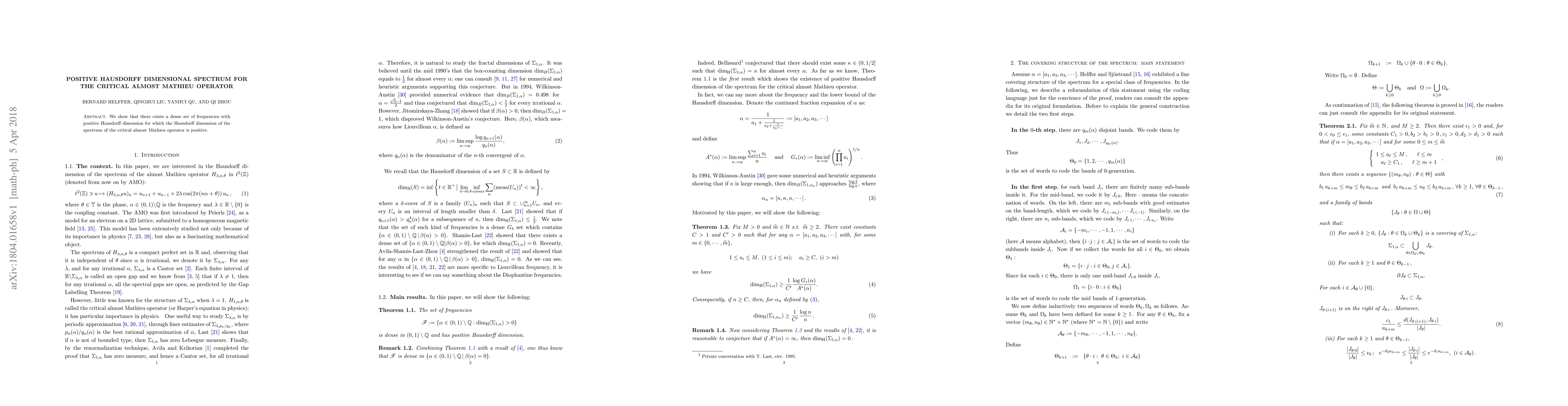 The paper presents a novel approach to establishing positive Hausdorff dimension for the spectrum of the critical almost Mathieu operator using semi-classical analysis and the Harper model.