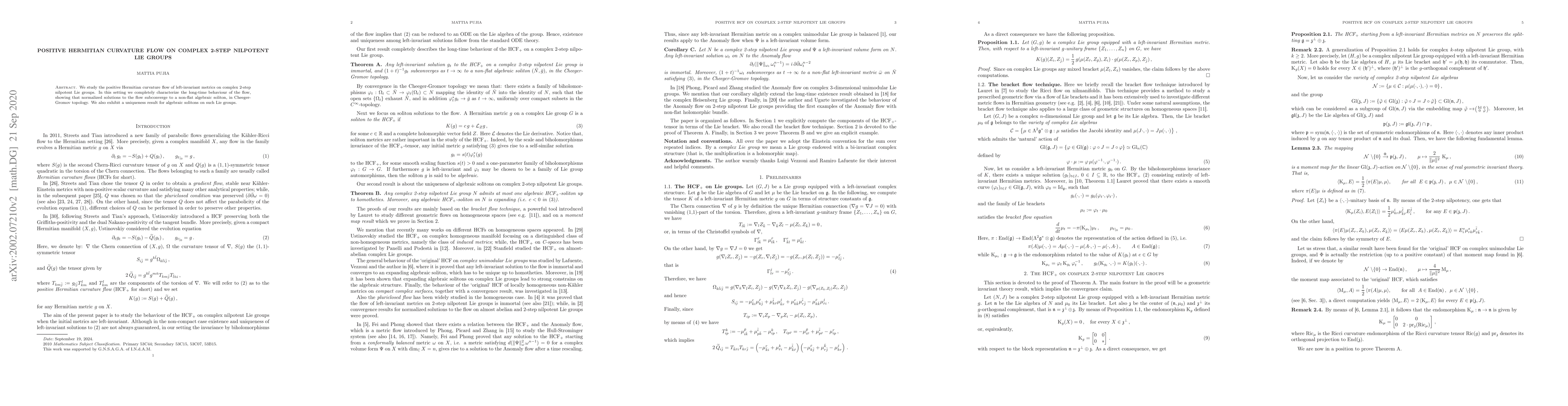 This paper characterizes the long-term behavior of the positive Hermitian curvature flow on complex 2-step nilpotent Lie groups, demonstrating that normalized solutions converge to a non-flat algebraic soliton. It also proves the uniqueness of these solitons on such Lie groups.